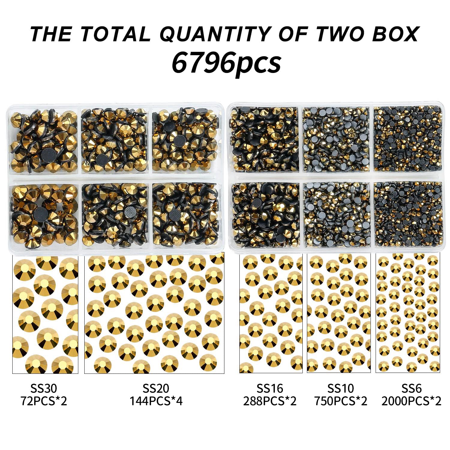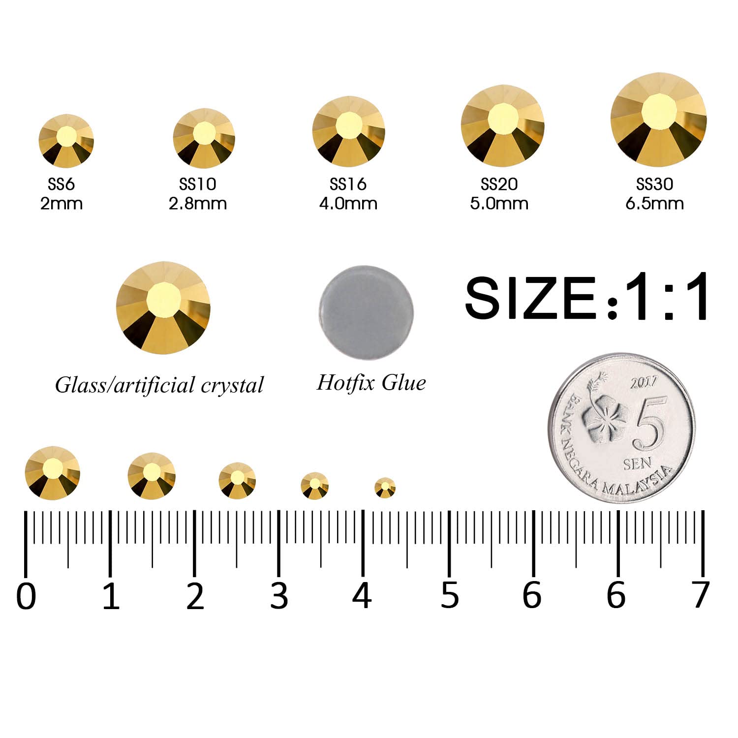 MEIBITE 6796PCS Gold Hotfix Rhinestones Crystal Stones Glass for Fabric Clothes Shirts Sparkly Flat Back Round with Tweezers and Picking Pen (SS6~SS30 Set)