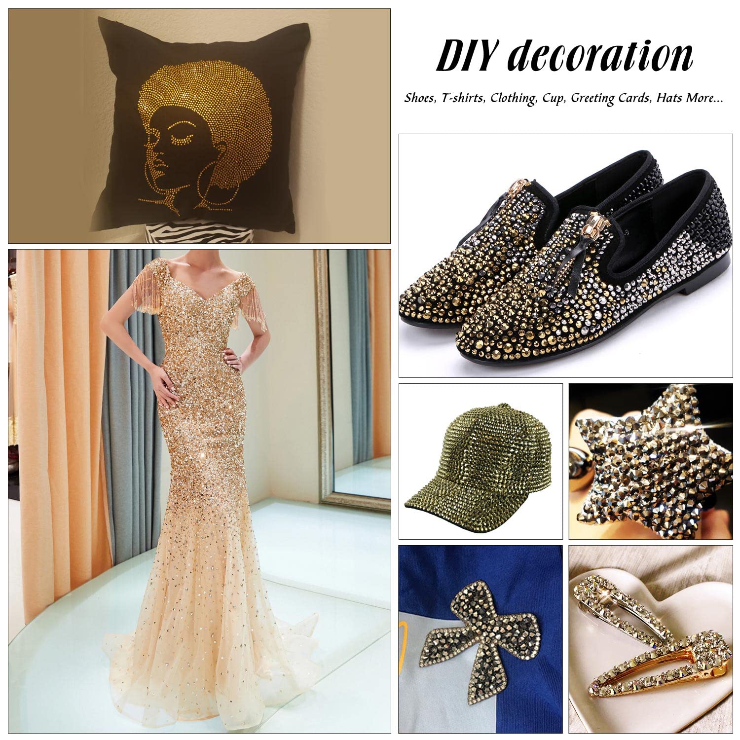 - Use tweezers and Picking Pen gem picker to pick rhinestones, Hotfix Applicator or household ironer, heat press machine for heat repair and fixation, after the heat activated glue melts, stick on the object and lightly press the rhinestones for about 5 seconds. Can also be glued with E6000 glue.
