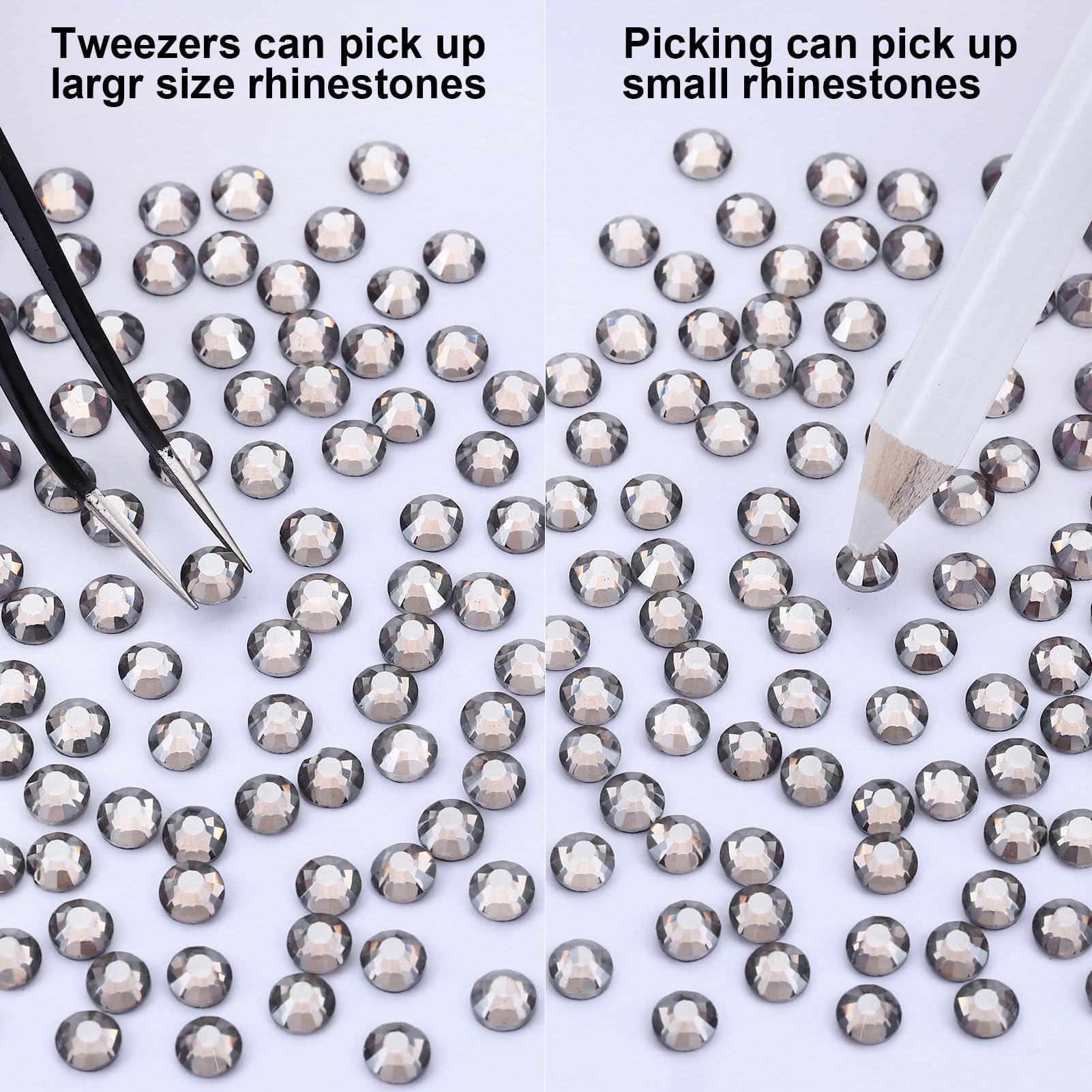 - Use tweezers and Picking Pen gem picker to pick rhinestones, Hotfix Applicator or household ironer, heat press machine for heat repair and fixation, after the heat activated glue melts, stick on the object and lightly press the rhinestones for about 5 seconds. Can also be glued with E6000 glue