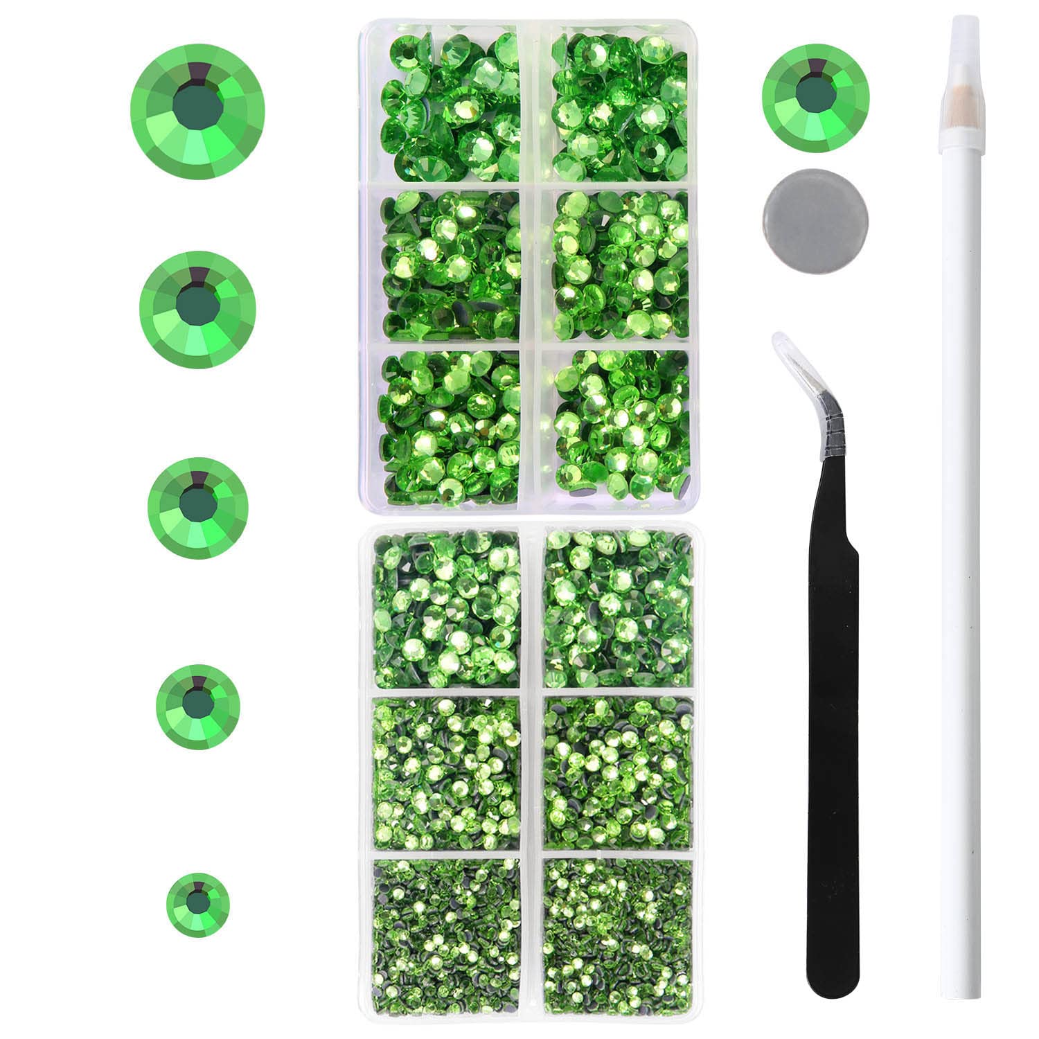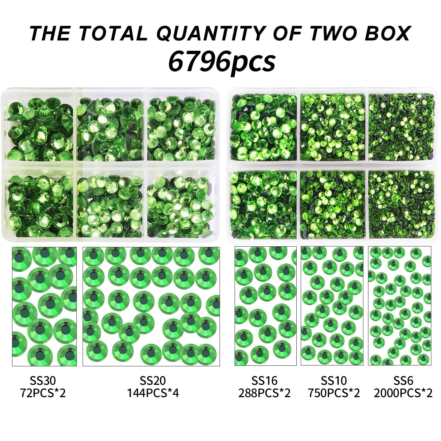 MEIBITE 6796PCS Light Green Hotfix Rhinestones Crystal Stones Glass for Fabric Clothes Shirts Sparkly Flat Back Round with Tweezers and Picking Pen (SS6~SS30 Set)