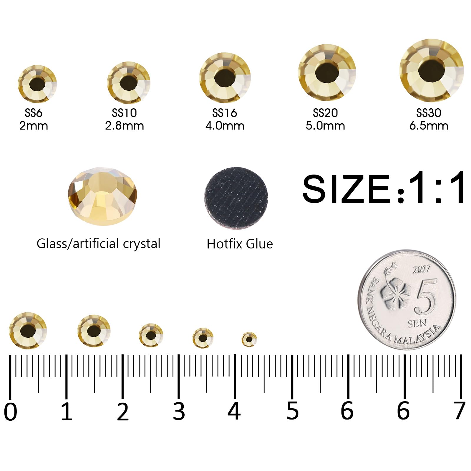 MEIBITE 6796PCS Light Yellow Hotfix Rhinestones Crystal Stones Glass for Fabric Clothes Shirts Sparkly Flat Back Round with Tweezers and Picking Pen (SS6~SS30 Set)