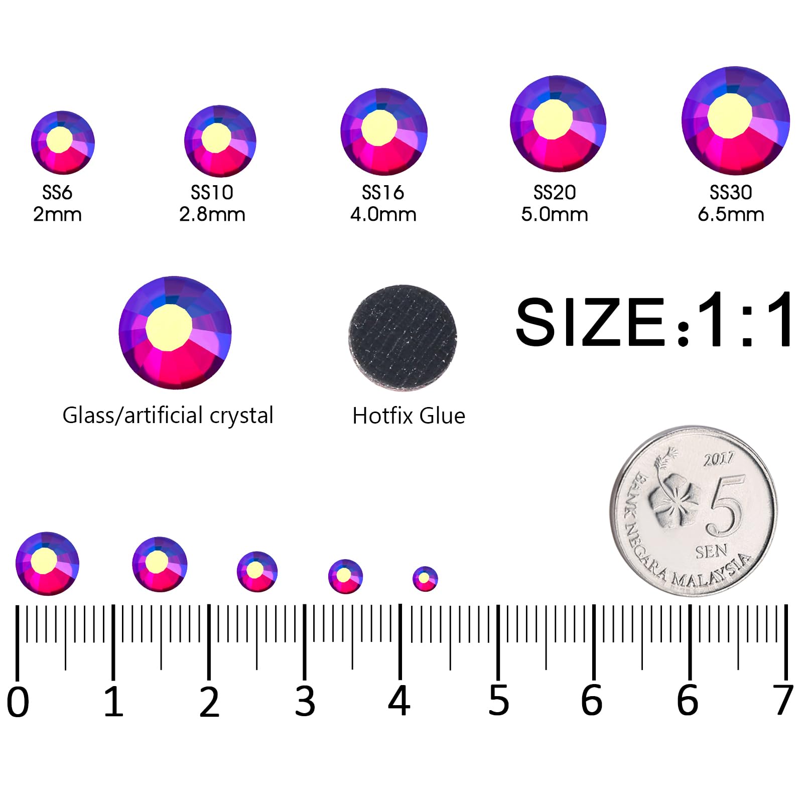 - Material: Glass/Artificial Crystal, Flat Back Round, High-precision cross-section, multi-sided cutting, high brightness, high Sparkly. These thermal repair rhinestone bottoms are heat activated glue that melts and sticks when heated. The Red runs through the entire crystal, and the crystal does not fade.
