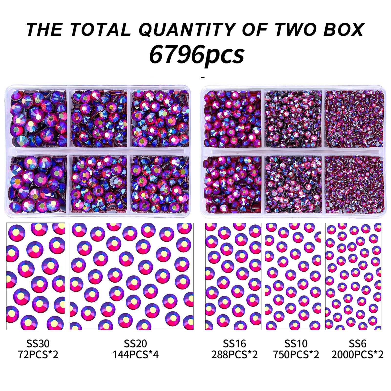MEIBITE 6796PCS Red Ab Hotfix Rhinestones Crystal Stones Glass for Fabric Clothes Shirts Sparkly Flat Back Round with Tweezers and Picking Pen (SS6~SS30 Set)