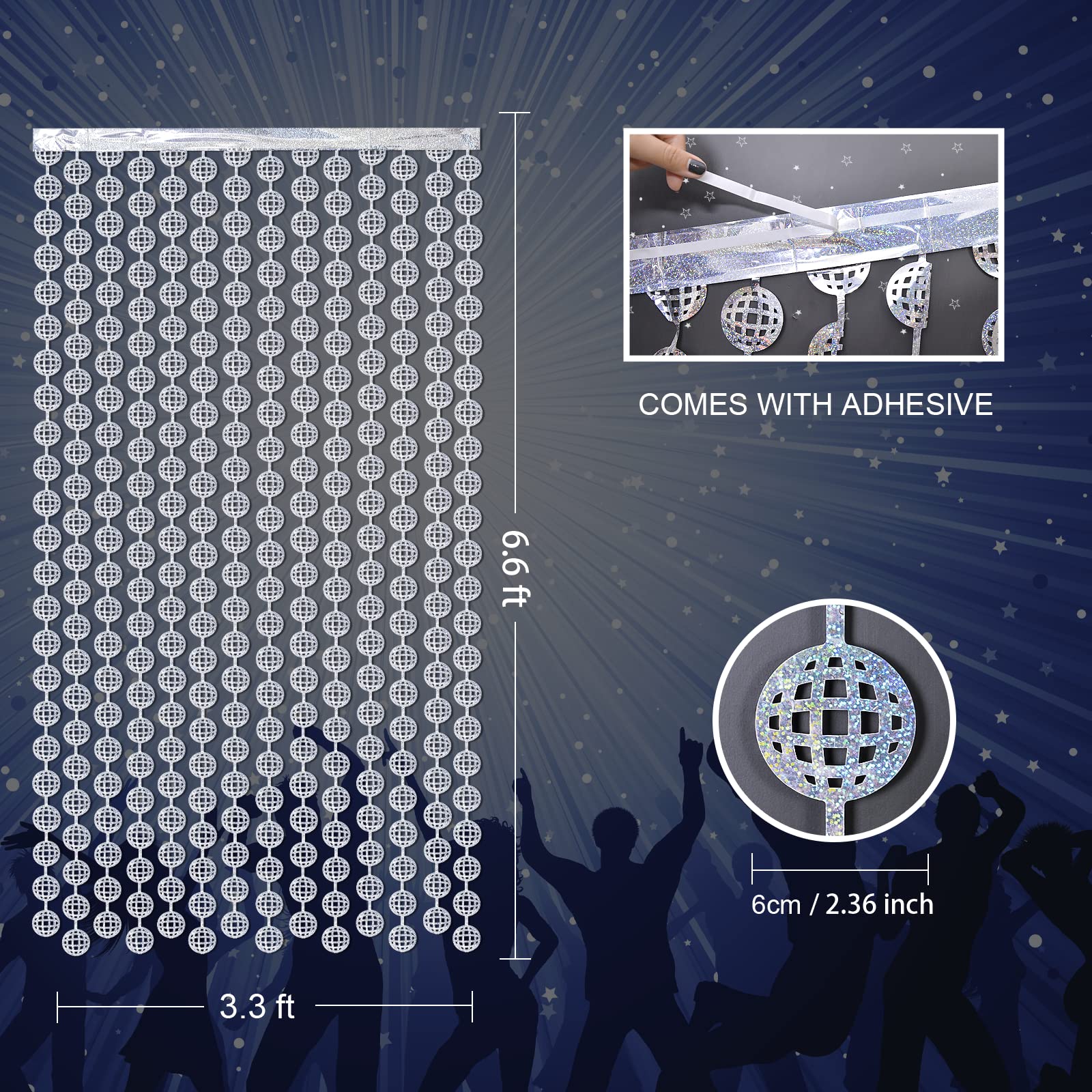 - πͺ©γ DISCO PARTY DECORATIONS γ: 2 packs of silver disco ball foil fringe curtains, Extra large size (width x drop) 3.3 x 6.6 ft each, fantastic photo prop backdrop for disco night party and Taylor party decor