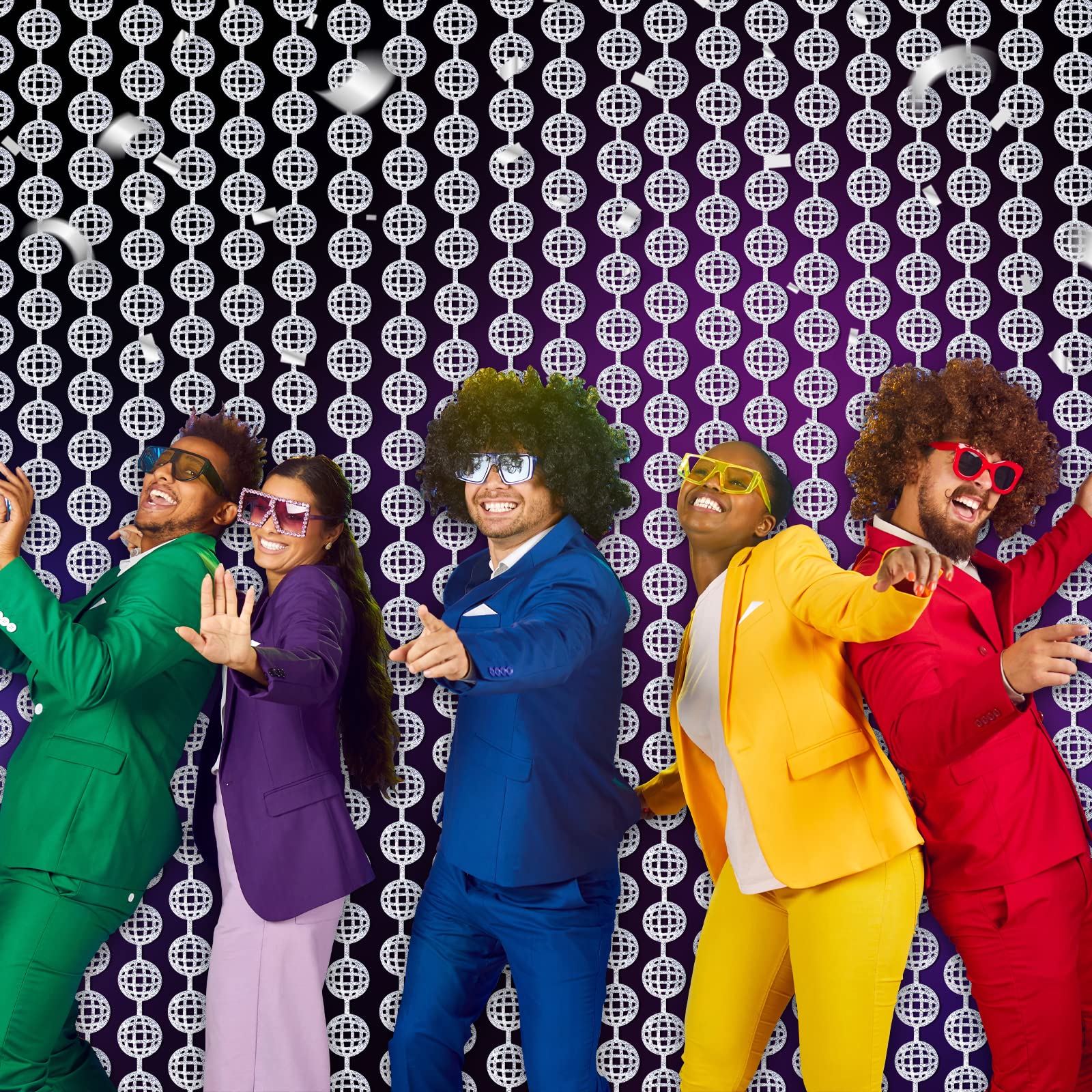 - πͺ©γ WIDELY APPLICATIONS γ: These disco ball foil fringe curtains are perfect for a live streamer backdrop, broadcast streamer backdrop, 70s party photo backdrop, dessert table backdrop, stage backdrop, disco backdrop, bar backdrop, school party backdrop decor, home decoration, etc.
