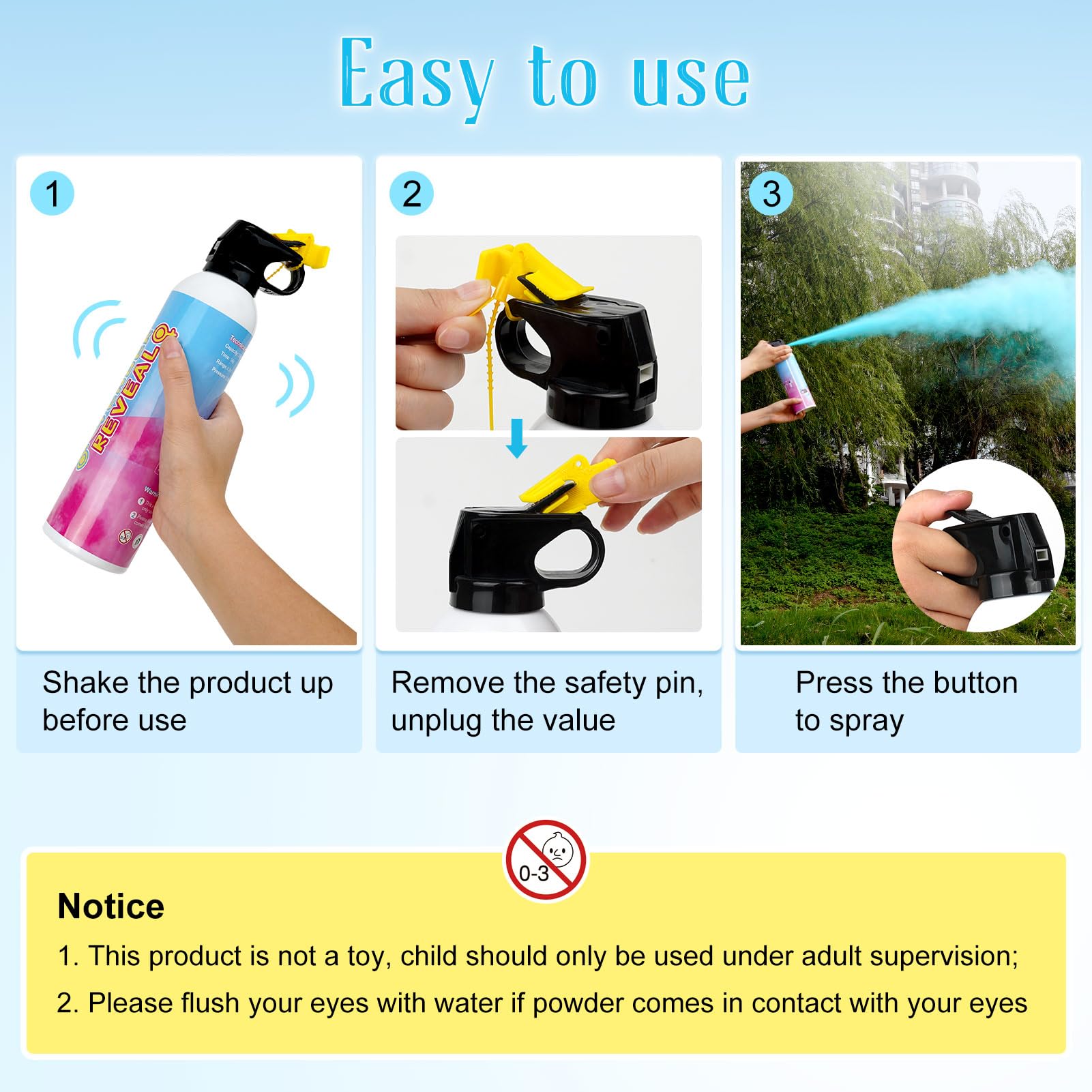 - Long-lasting more than 14s, our gender reveal fire extinguisher blasters contains 0.78Ib powder inside, make sure it can keep spraying more than 14s, a great ideas for your baby reveal party