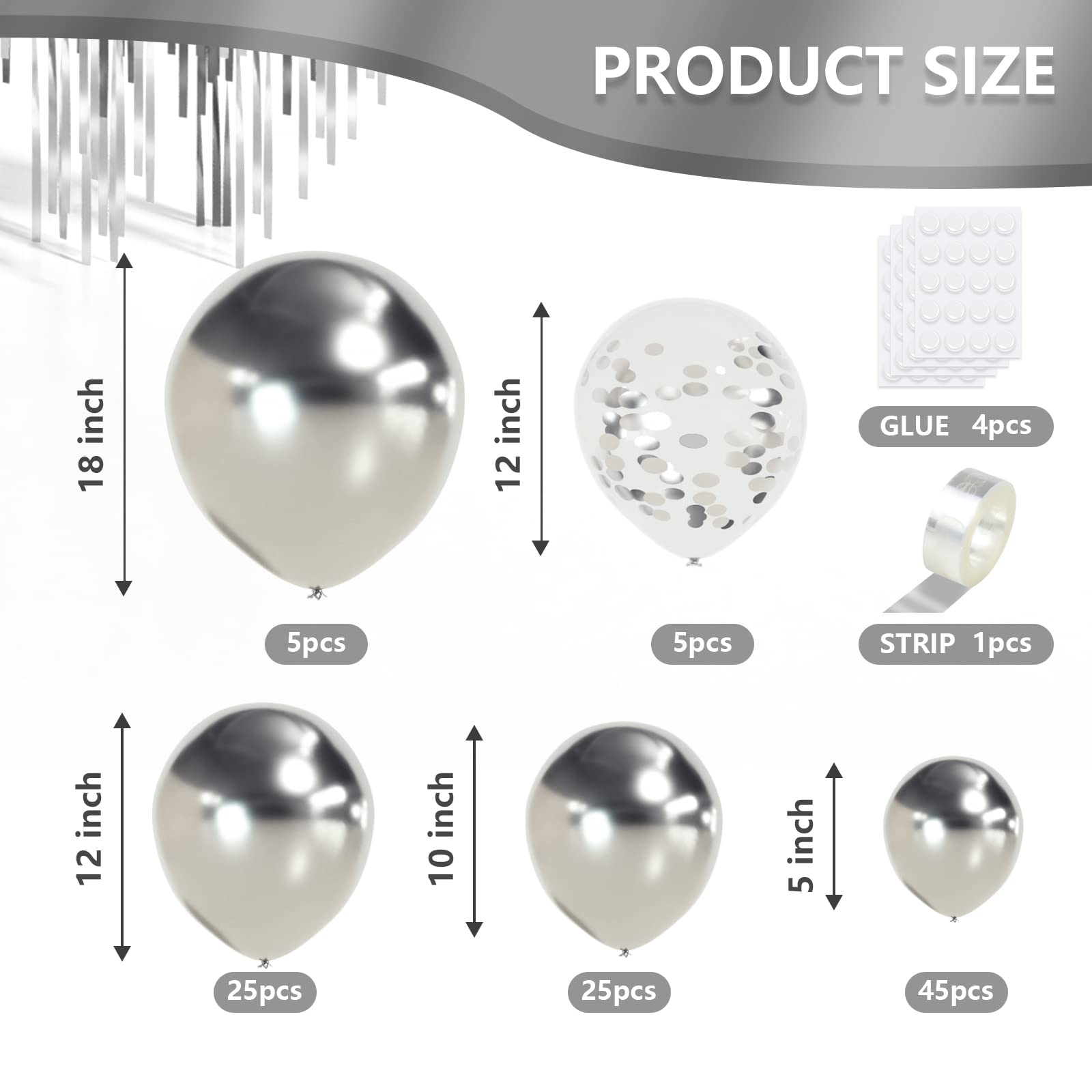 Metallic Sliver Balloon Different Sizes 110 Pcs 18 12 10 5 Inch Chrome Balloon Garland Arch Kit Confetti Balloons Latex Party Balloons for Graduation Baby Shower Birthday Wedding Party Decorations