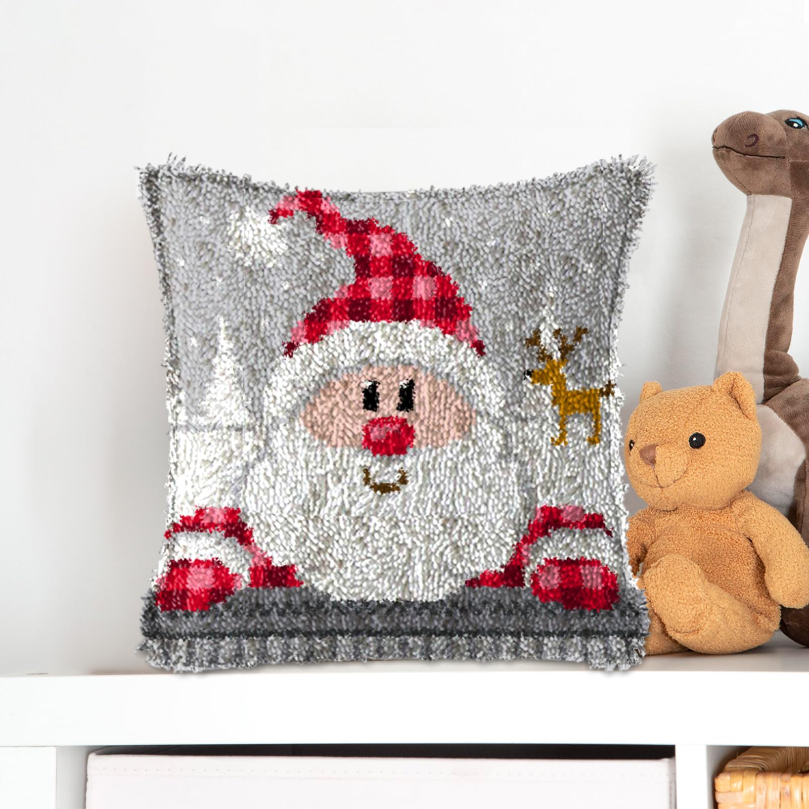 Latch Hook Kit, Christmas Latch Hook Kits for Adults DIY Decorative Pillowcase Embroidery Cross Stitch Arts Craft for Home Sofa Furniture 17X17inch Christmas Snowman