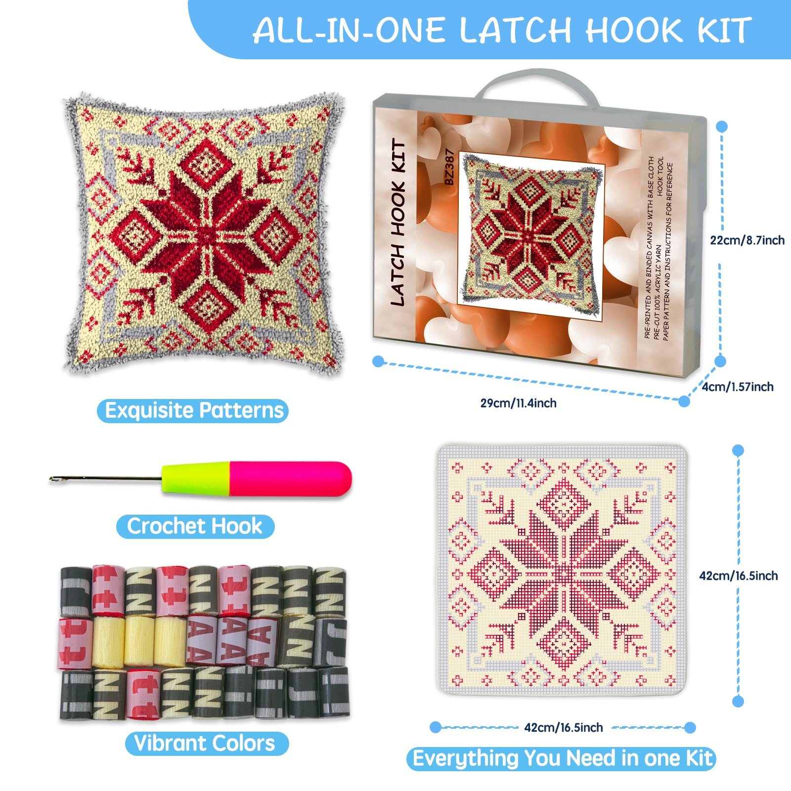 Latch Hook Kit, Christmas Latch Hook Kits for Adults DIY Decorative Pillowcase Embroidery Cross Stitch Arts Craft for Home Sofa Furniture 17X17inch Snowflake