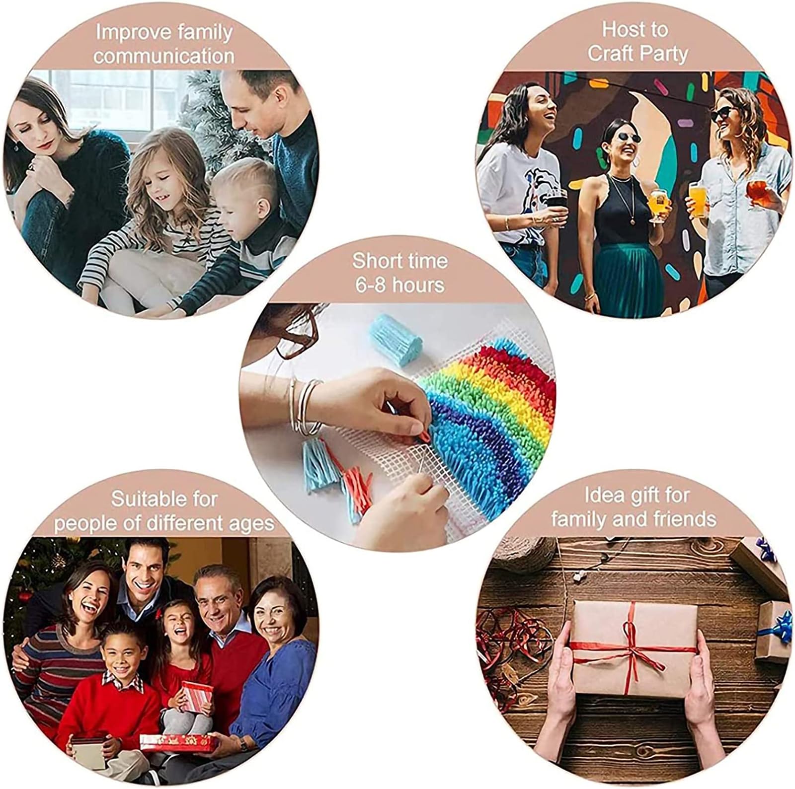 - Enjoy Craftsmanship--- Take some time away from the stress of work and every day life with a craft that is therapeutic and relaxing. Each latch hooking kit is a fun activity-just loop, hook and pull, it will be a great family project to create and develop your crafting skills