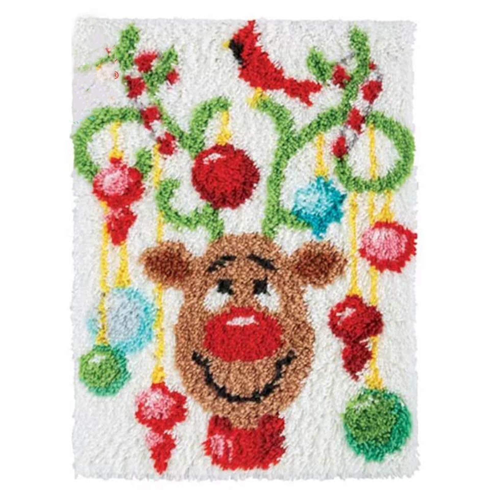 MIAOLLUN Latch Hook Kit, Reindeer Christmas Pattern DIY Rug Crochet Yarn Kits, Embroidery Decoration 20.4" X 15" (52X38cm)