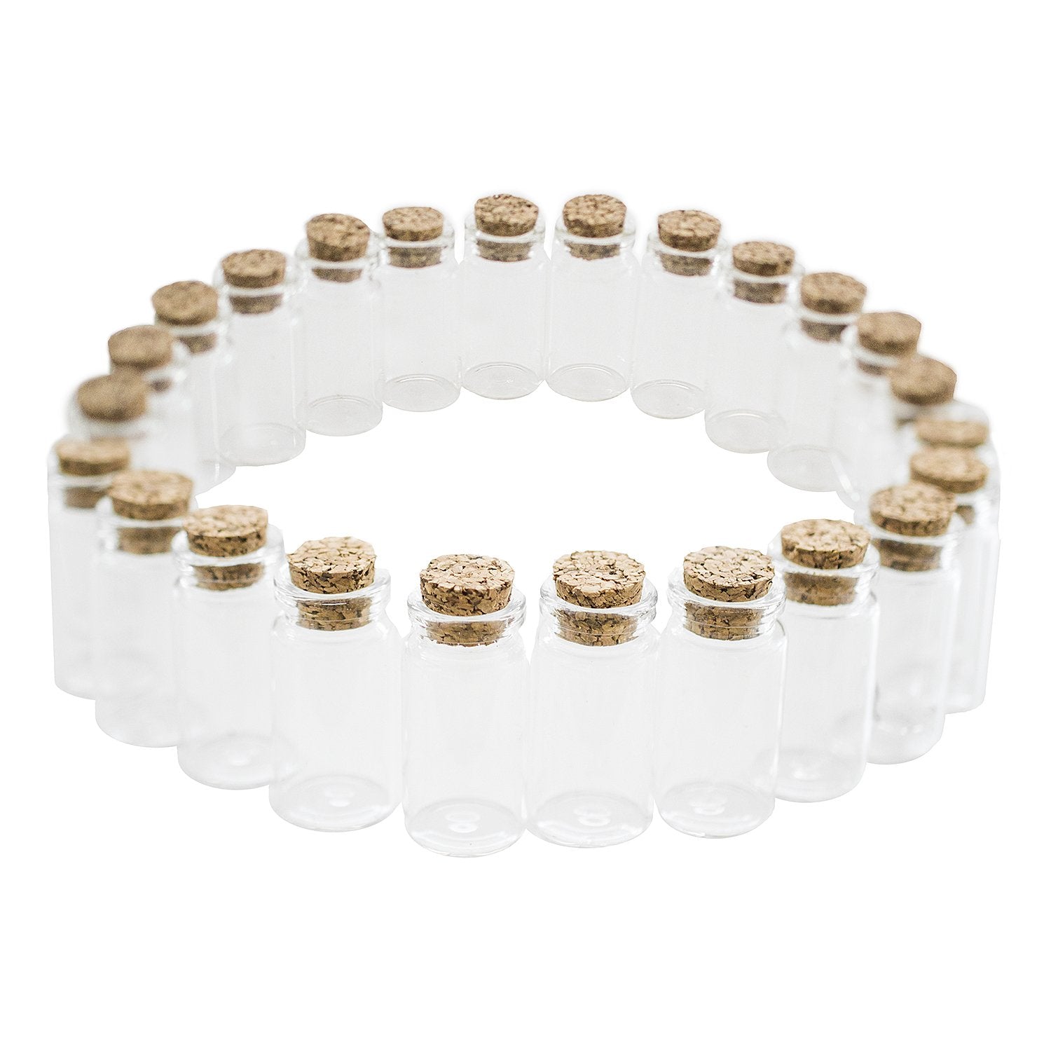 Mini Clear Glass Jars Bottles with Cork Stoppers for Arts & Crafts, Projects, Decoration, Party Favors - Size: 1-1/2" Tall X 3/4 Inches Diameter (24)