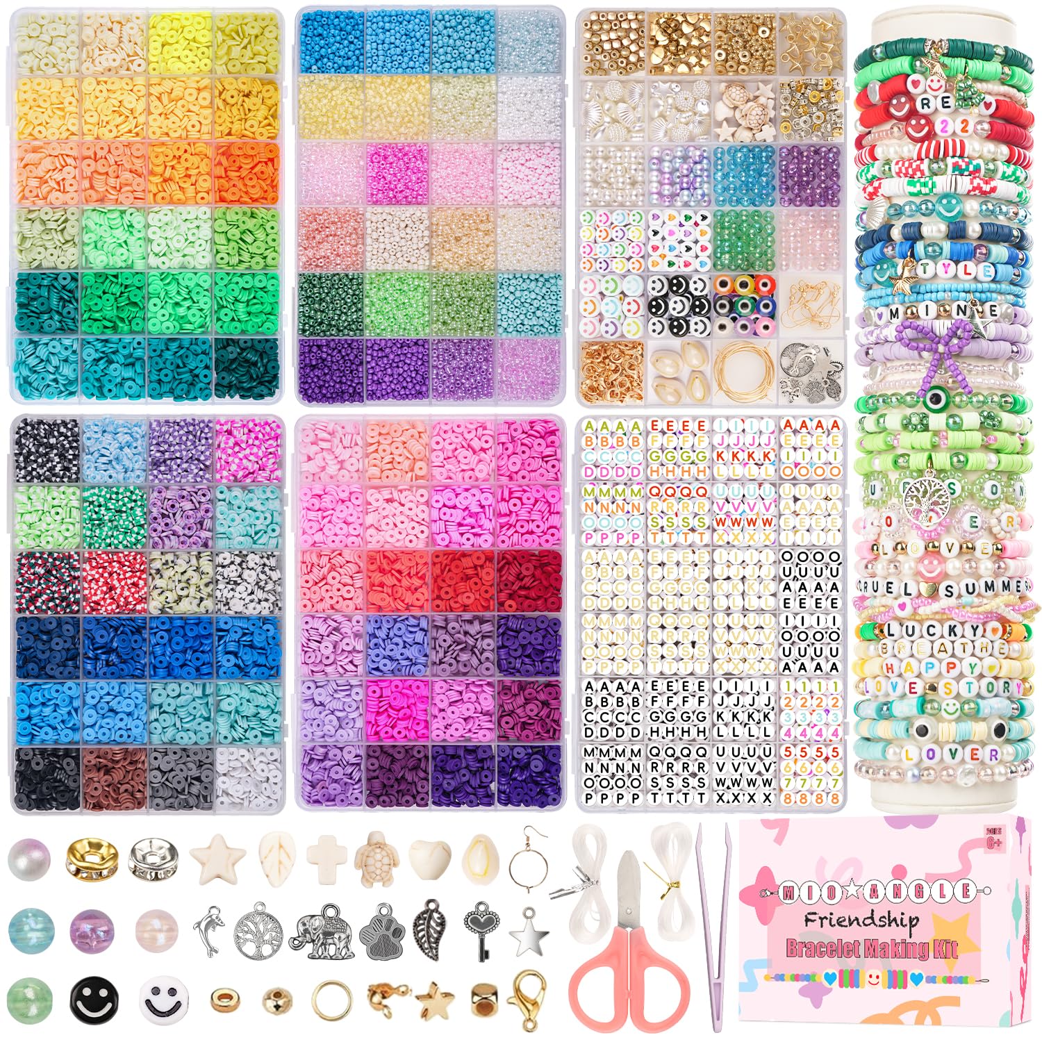 Mio Angle Friendship Bracelet Making Kit 6 Box 9000PCS Clay Beads 5000PCS Glass Seed Beads Jewelry Making Kit Letter Beads Charms Pearl Cute Chams Holiday Gifts for Girls Adults