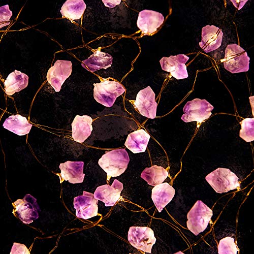 - ✨💎【Natural Amethyst String Lights Detail Information】10 ft 40 lights; Amethyst Size:1 - 2cm; Material:copper wire+40 Amethyst Stone(each stone varies in size). Amethyst Color: purple;Light Color: warm white; We combine natural crystal and light, and the stone by artificially wash/dry/bond/embellish etc. craft, finally create an amazing string lights ornament effect. No radiation, no toxin, so safe for baby, children and pets.