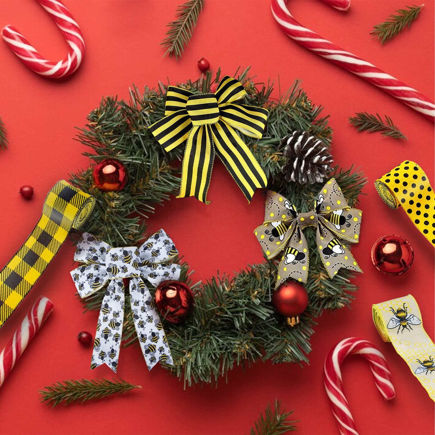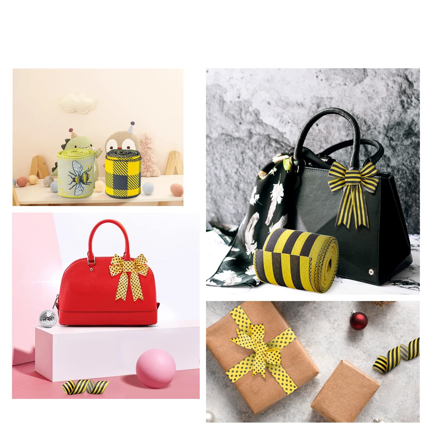 - 【6Patterns】Bee ribbon set have six patterns, including bees, bumble bee, stripe, polka dot,plaid, etc. It is very cute with yellow and black,and not easy to fade
