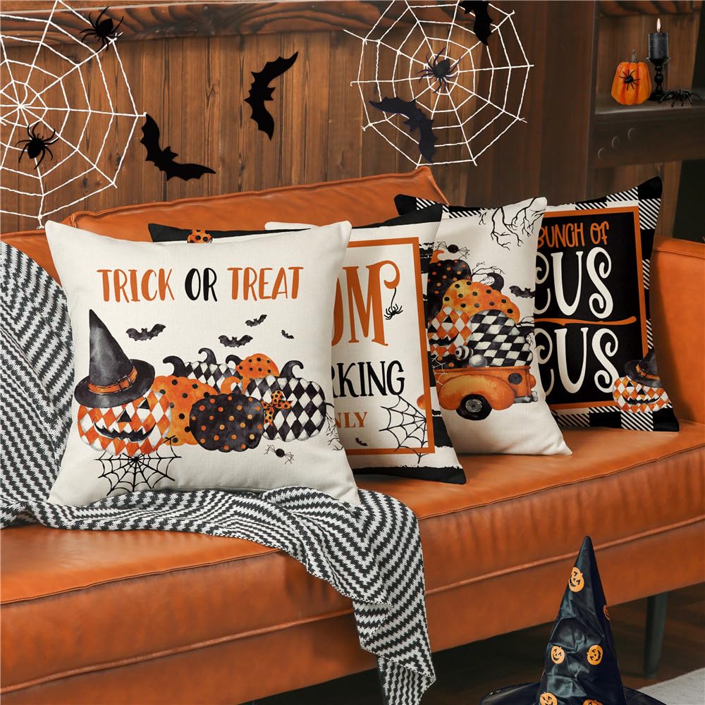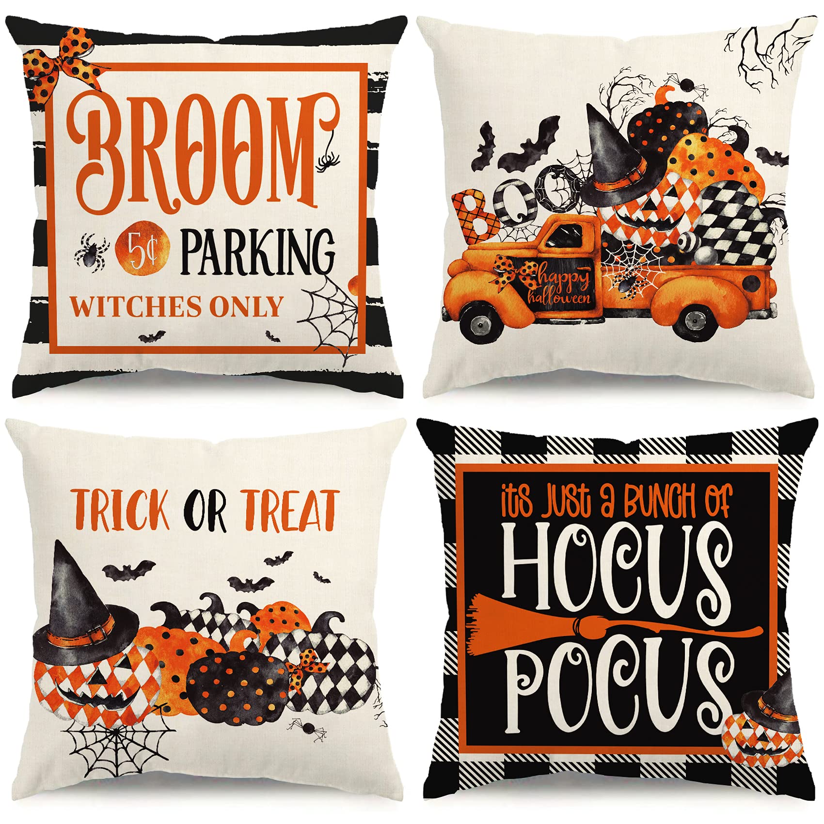 - SET OF 4 MACHINE WASHABLE HALLOWEEN THROW PILLOW COVERS perfect for indoor and outdoor decorations
