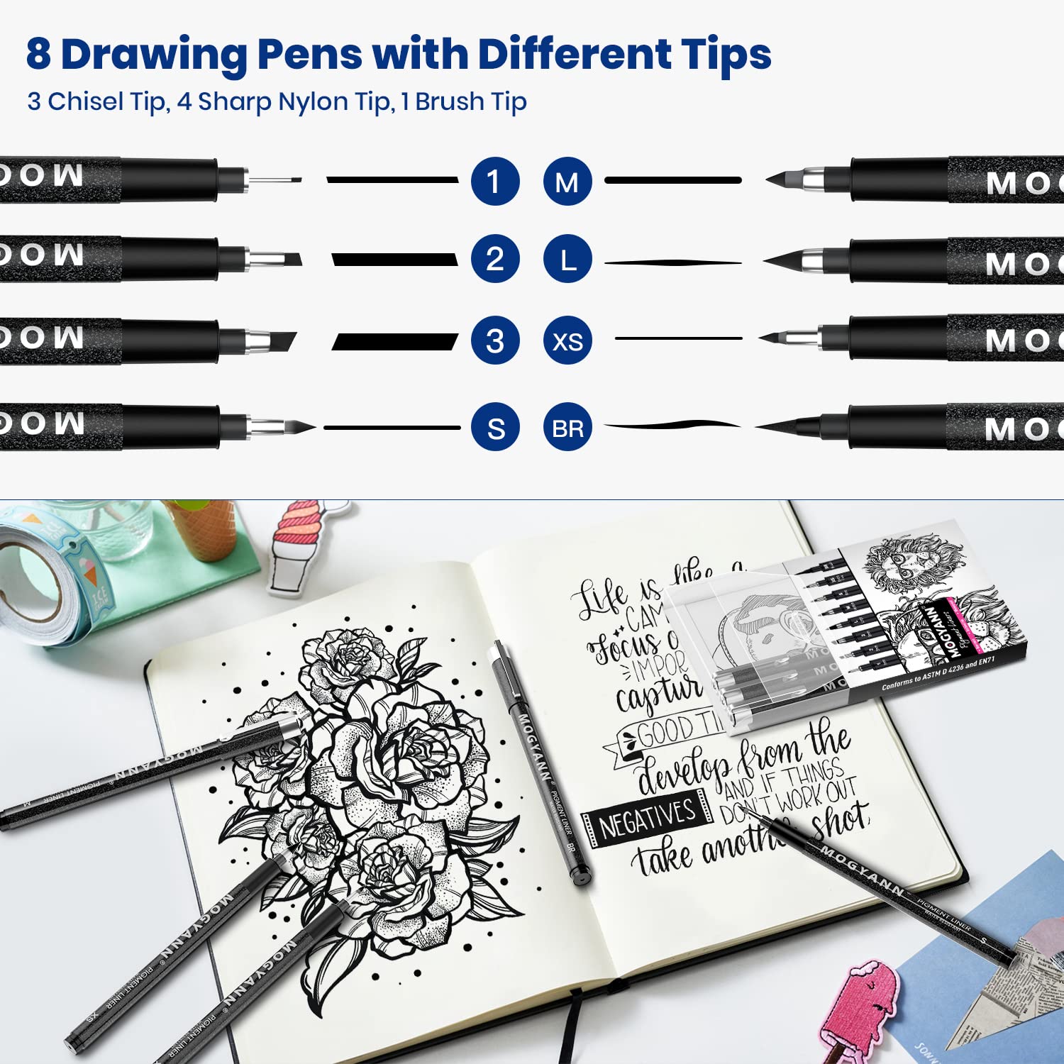 Mogyann Art Pens, Black Drawing Pens 8 size Ink Pens Set for Artist Writing, Sketching, Manga, Anime