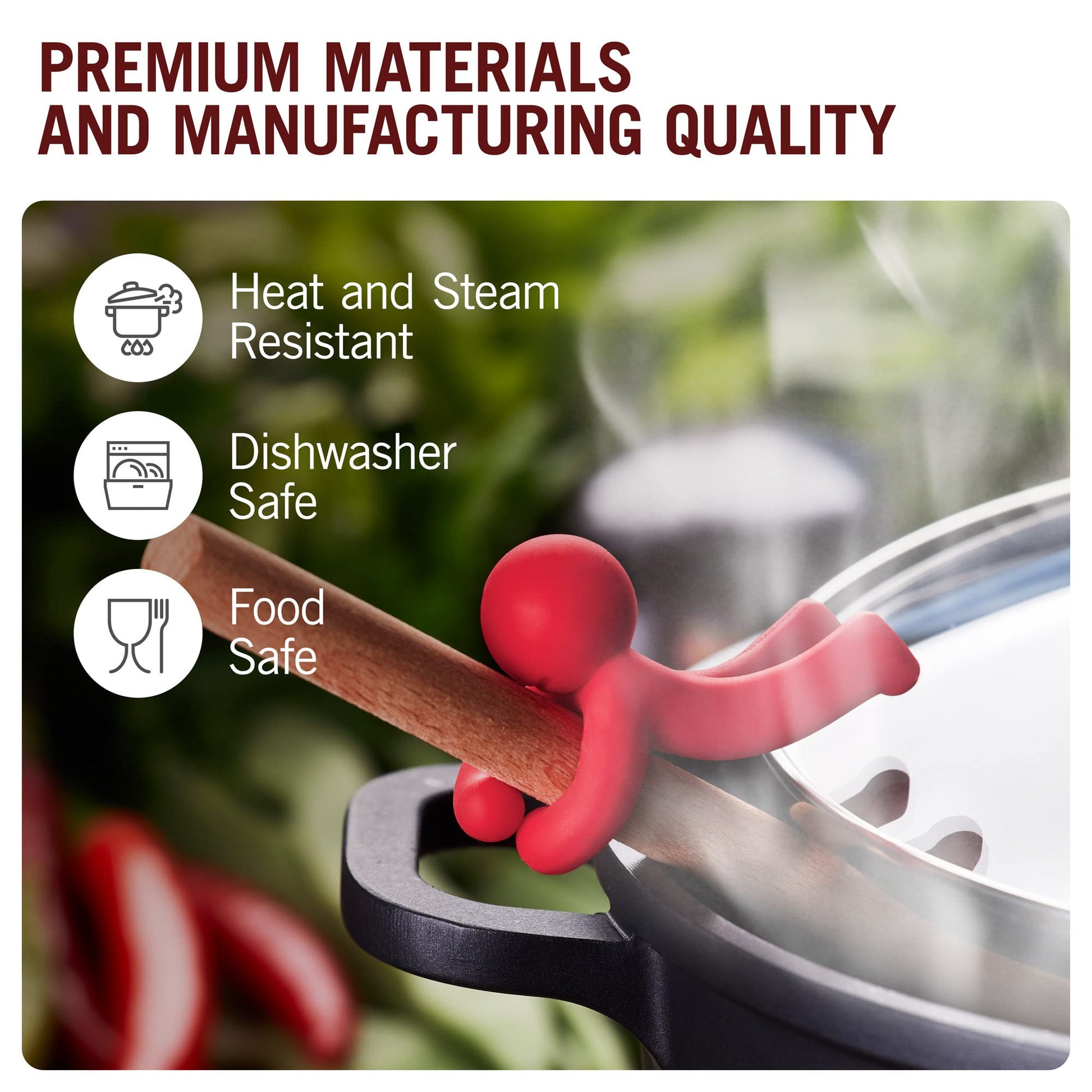 - A BUDDY FOR COOKING UTENSILS! Hug Doug is an amazingly simple kitchen gadget that will nonetheless save the day in your kitchen. Lovingly embracing the utensil you stir with, this kitchen spoon holder will prevent it from slipping inside the pot AND keep the lid slightly lifted in case you want to reduce and thicken your soup, sauce, or stew. Made of flexible silicone, Hug Doug snugly fits your regular-sized spoons, spatulas, and ladles, ensuring they don’t slip into the pot.