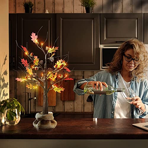 Monsense 24 Inch Artificial Fall Oak Maple Tree, Lighted Fall Decorations for Home, Fall Centerpieces for Tables, Perfect for Thanksgiving, Autumn, Wedding and Halloween Decor