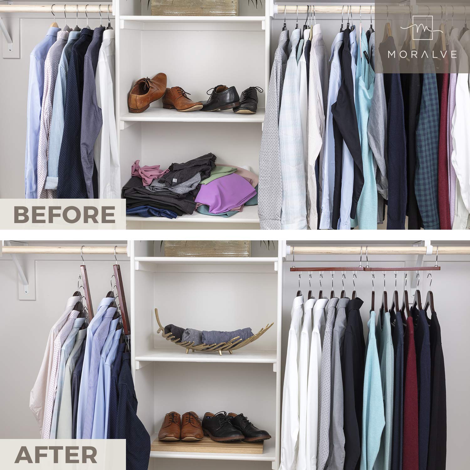 MORALVE Space Saving Hanger for Closet Organizer - 4 Pack European Beechwood Shirt Organizer for Closet - Space Saver Hangers for Clothes - Closet Clothes Organizer Space Saving Collapsible Hanger