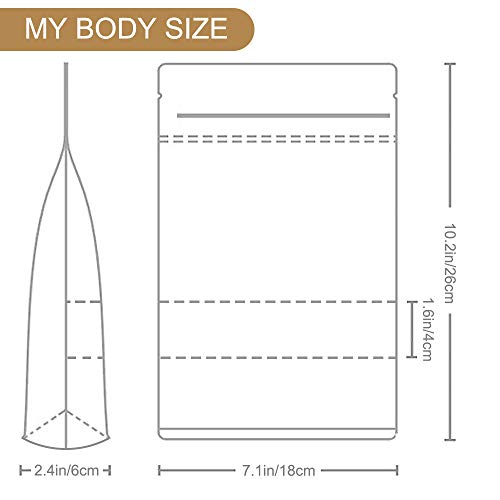 - Quantity and Size: 72 pcs 7×10in (18×25cm) kraft stand up paper pouch bag with a window height of 1.57in, a bottom diameter of 1.57in and a volume of 9.5oz.