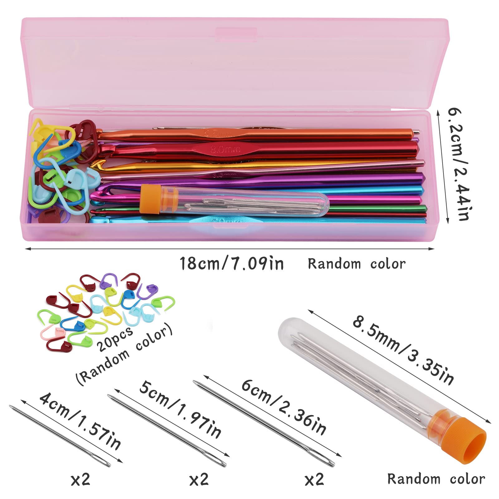 - Crochet Kit: Our 48pcs crochet hook set contains 12pcs colorful aluminum crochet hooks and 9pcs iron crochet hooks, complete sizes, and iron crochet hooks are suitable for crochet lace. The crochet starter kit has a variety of products and many accessories. It comes with 20 pcs of stitch markers, and 6 pcs of big-eyed blunt needles of different sizes with needle bottles, and our crochet kit has a storage box for convenient storage, which is very suitable for crochet beginners or professionals.