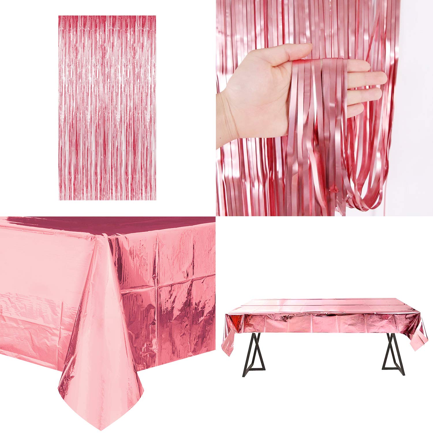 MOVINPE Pink Birthday Party Decoration, Happy Birthday Banner, Rose Gold Fringe Curtain, Foil Tablecloth, Heart Star Foil Confetti Balloons, 10g Table Confetti for Women Girl Birthday Party