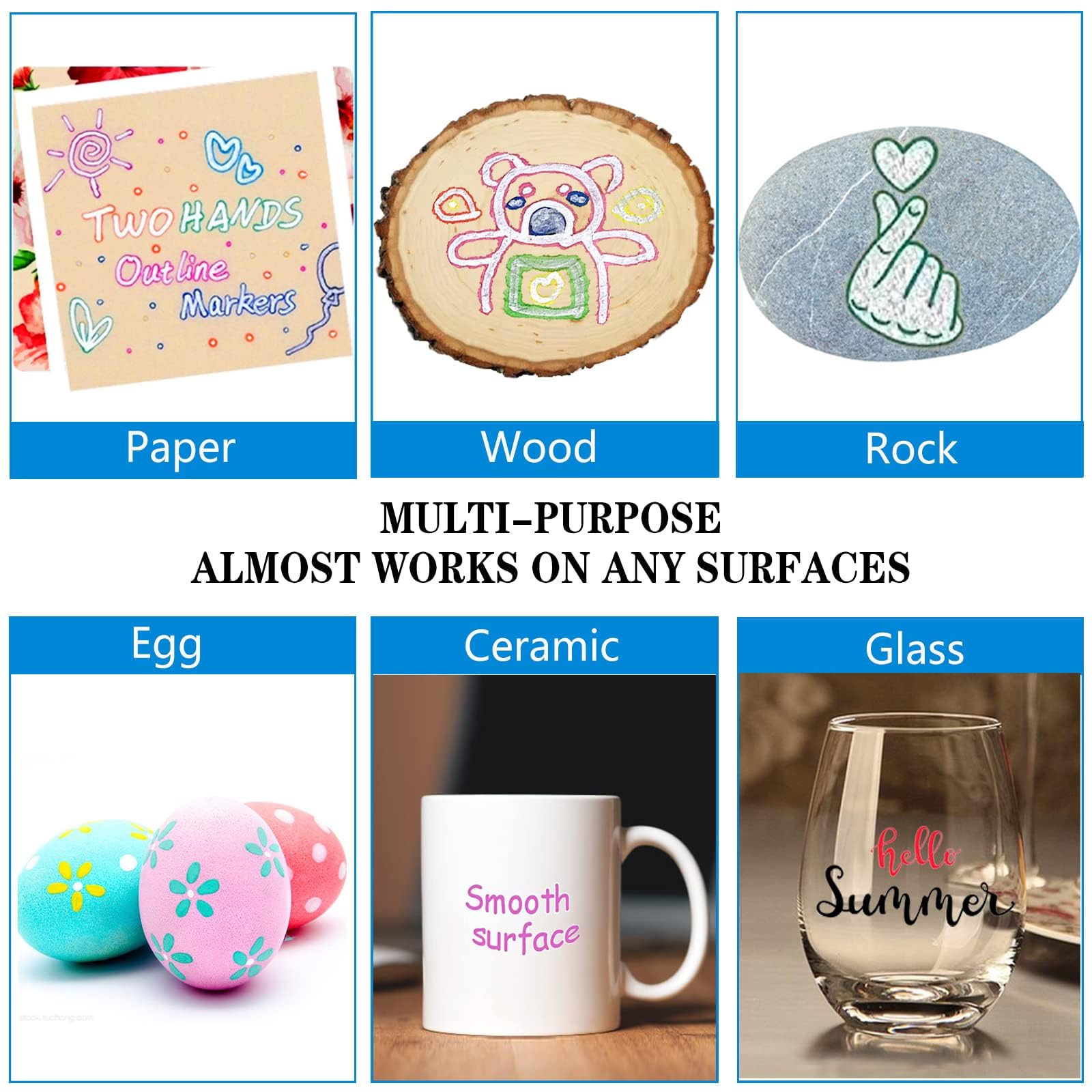 - ❤Premium & Unique Shimmer Markers: Muchcute outline metallic sparkle pen set has 12 assorted bright colors. The double line outline pens designed with unique technology will automatically produces outlines for you to create a beautiful dual-color effect. And it can draw 3 different effects on light colored paper, black paper and smooth surface. Let's DIY unique dual-color art projects today!