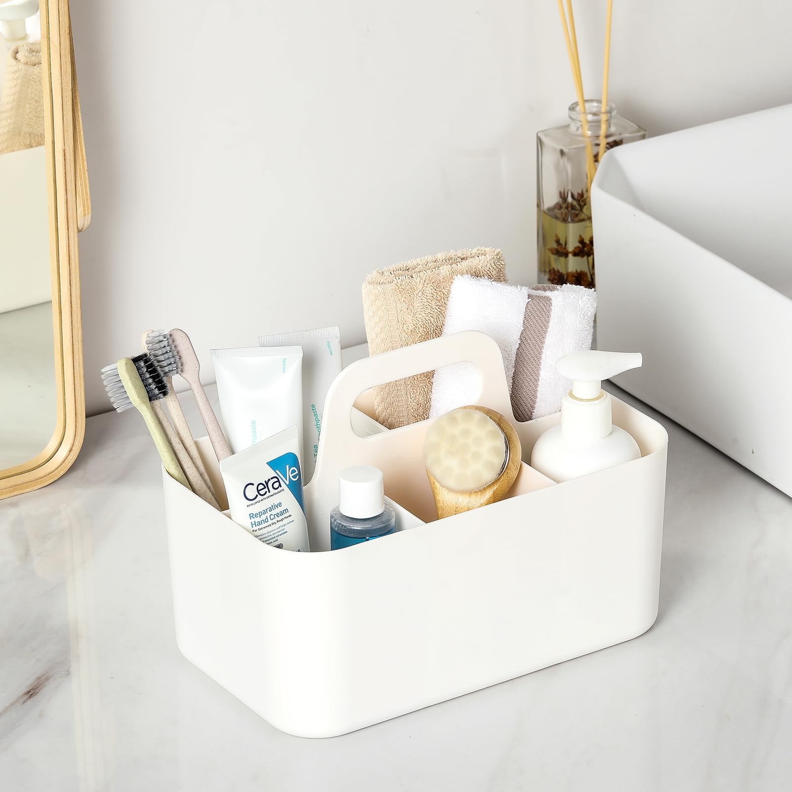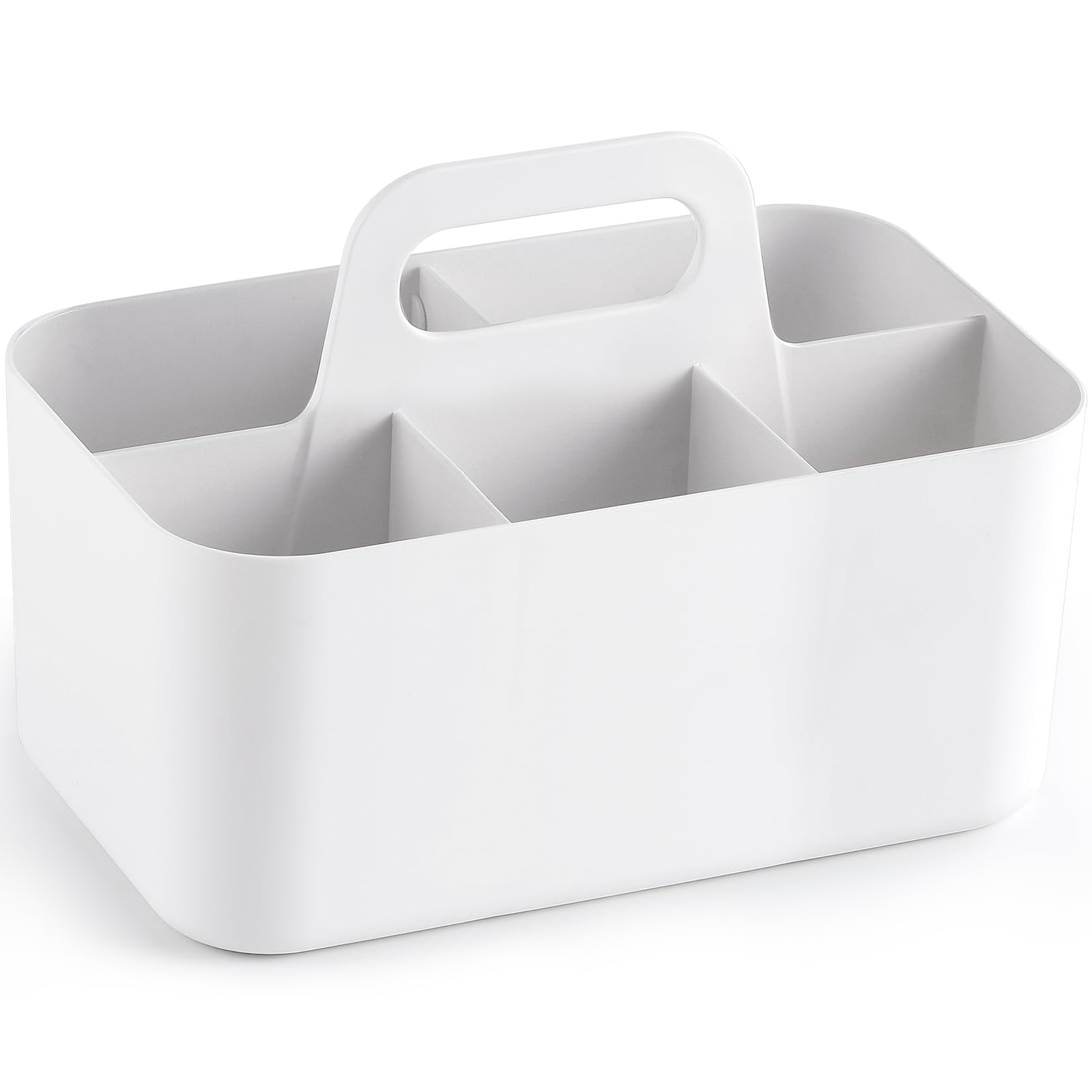 Multiuse Caddy Organizer with Handle - Stackable Plastic Bin Basket - Divided Storage Tote Holder for Art Craft Supplies, Makeup, Bathroom, Shower, Cleaning, Kitchen, Office, Dorm, Desktop - White