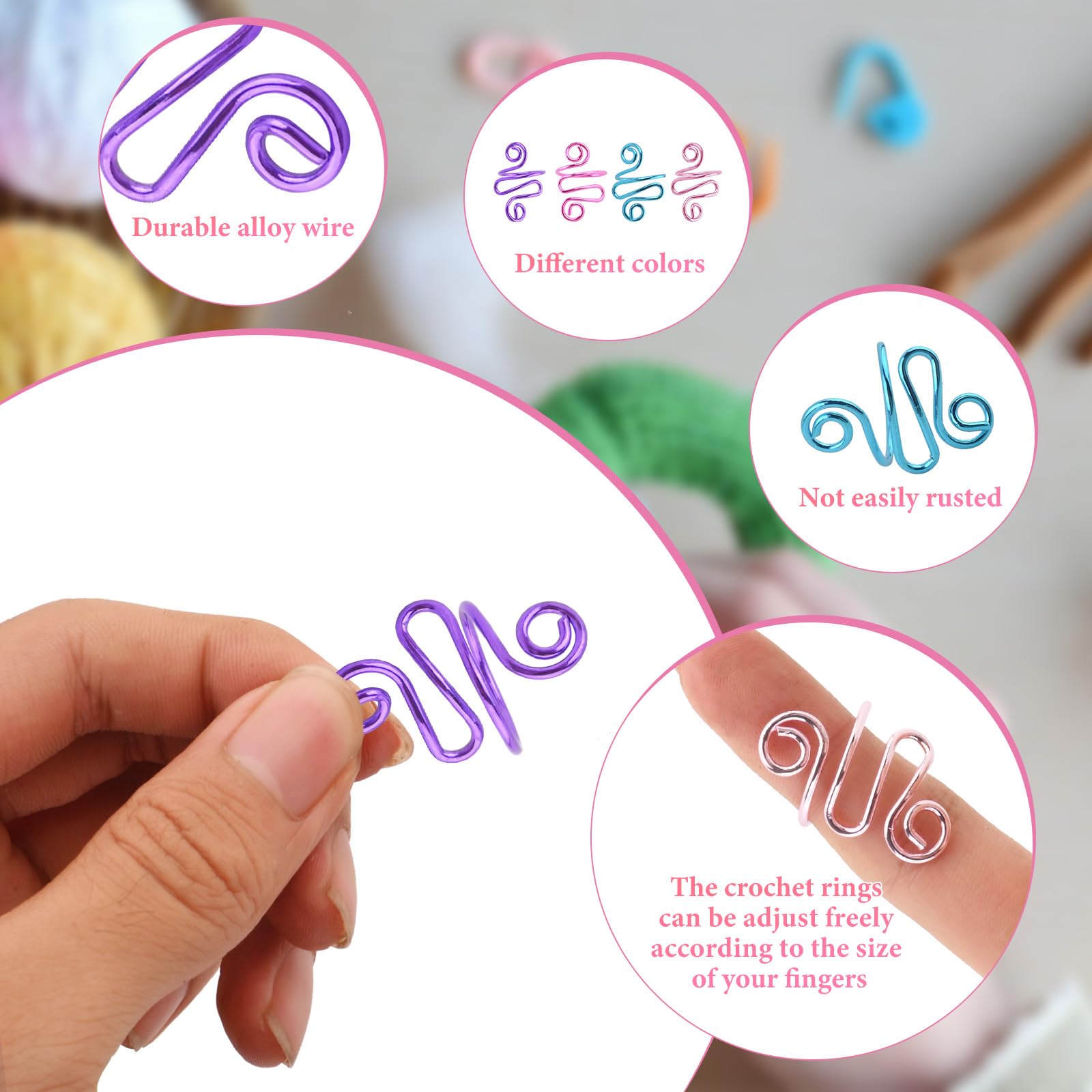 - 【Set Includes】4Pcs crochet rings for tension in four distinct shades: rose red, pink, purple, and azure. It further contains 120 stitch markers in 8 delightful candy colors, with 15 pieces in each shade. To boost convenience and portability, these crochet accessories come in a handy box, ready for use whenever you need them. Their vibrant hues not only cater to your diverse needs but also infuse a dash of joy into your knitting activities.
