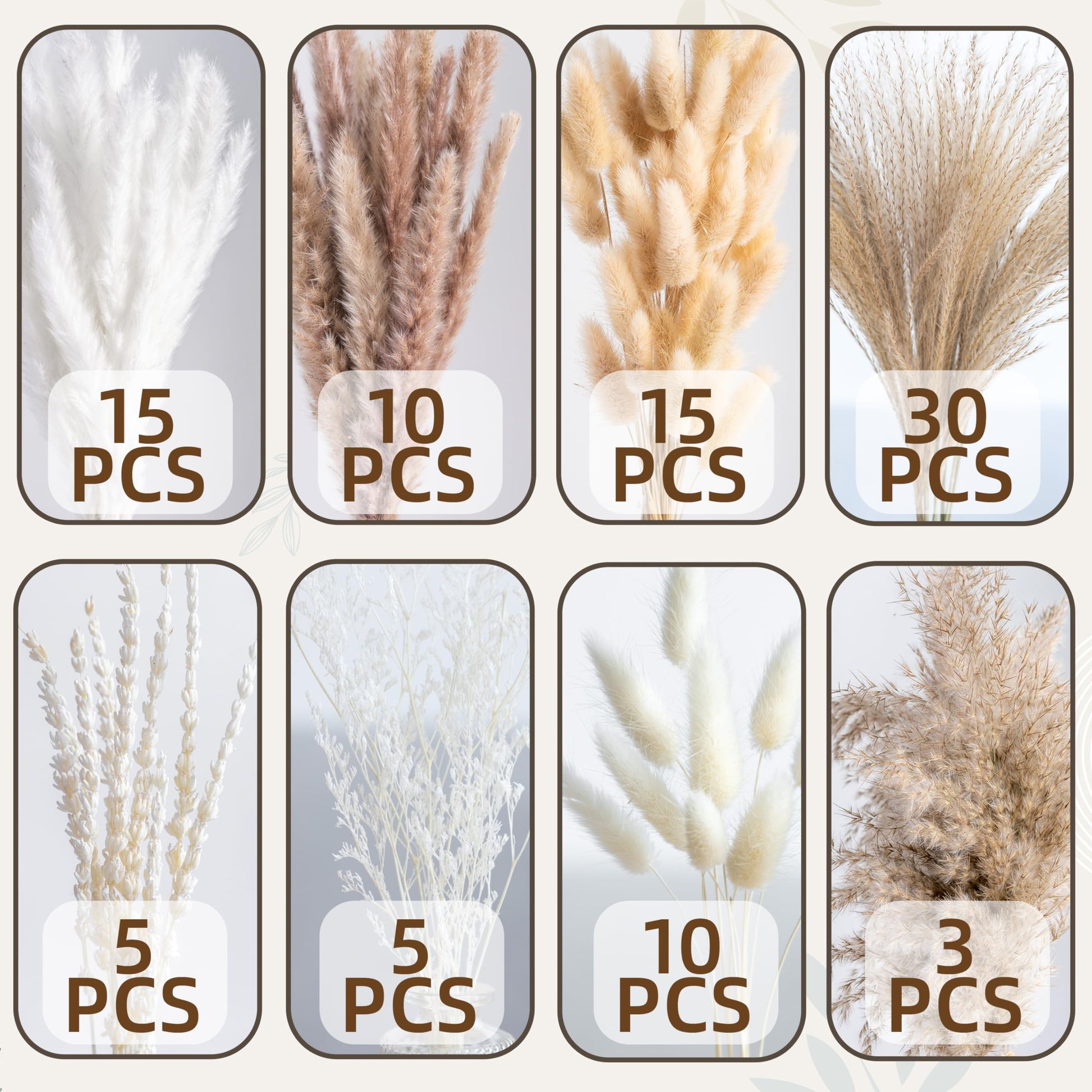 Natural Pampas Grass 8kind Grass Mix Bouquet | Dried Pampas Bouquet for Wedding Boho Flowers Home Table Decor Desk Decor, Rustic Farmhouse Decor (93PCS)