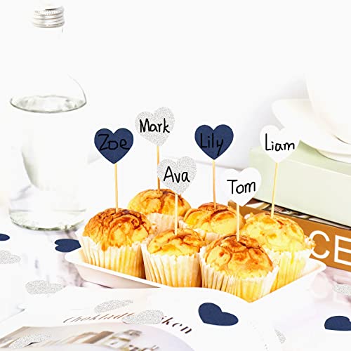 - 【 Easy to assemble 】The navy blue white silver confetti can be used as cupcake toppers or decoration of the cake display stand. Adding the glitter confettis around the table will let your table will look bright and pretty .