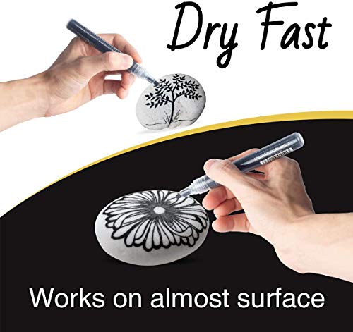 - Great for detailing & large area filling. Black White marker paint pens are very easy to control flow, with pump action 2-3mm medium round tip to give you writing bold and smooth. Whether it is detail painting or large area filling, your paint pens can help you make clear and accurate marks, add highlight for your art projects.