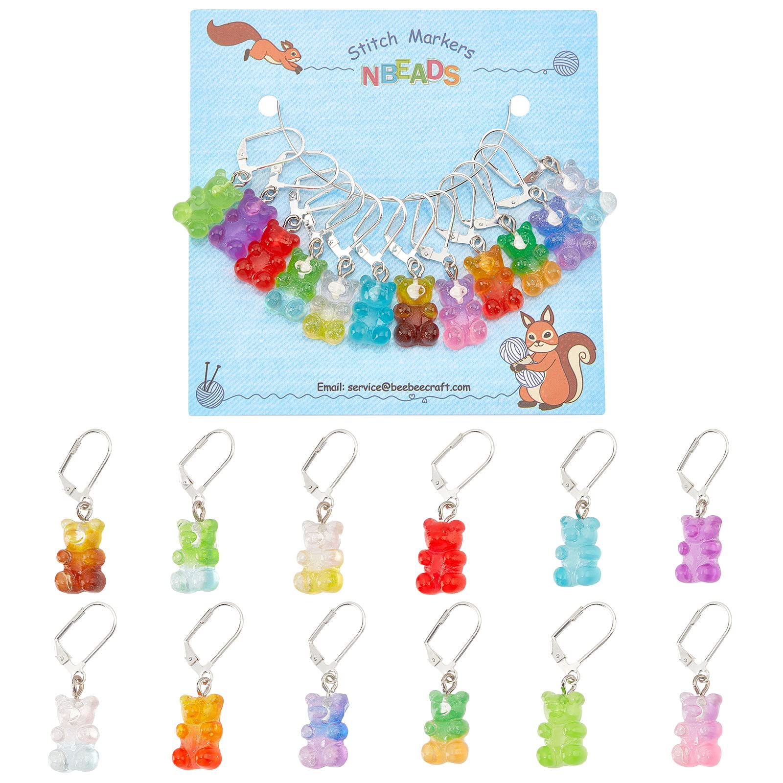 - Lovely Bear Stitch Markers -- Made from resin, these stitch markers are designed to be cute bear shapes that are lifelike, bright and beautiful. They come in 12 colors and help you organize and distinguish crochets in different locations, giving you more options for your DIY craft projects.