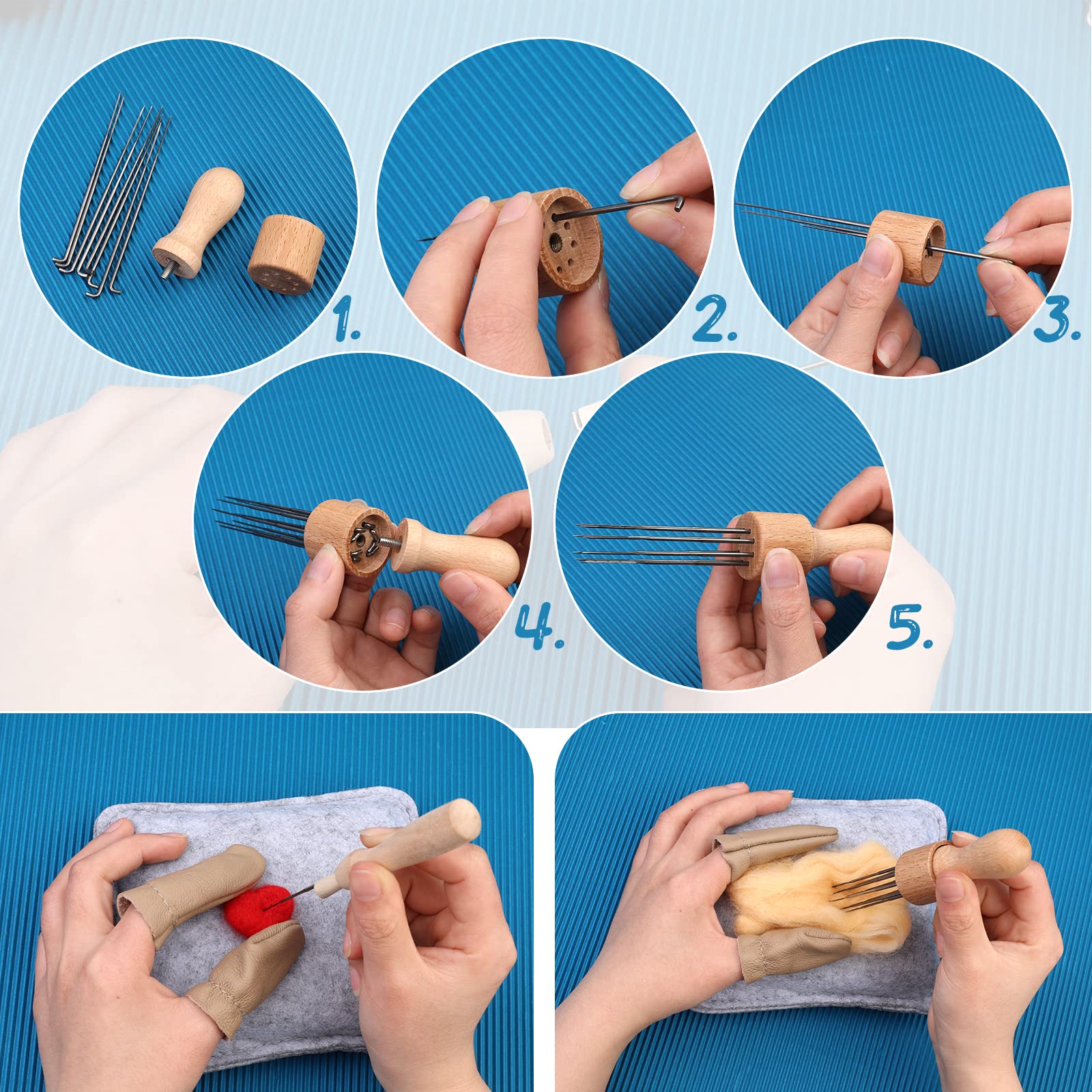 - More Felting Needles: Our felting needles with four different types of needles in this needle felting starter kit, a total of 24pcs needles. Whether it is a contour needle, a detail needle, or the ordinary felt needles are all in this. Which are packed in 3 different bottles and will not be confused. We also matched a wooden felting handle for you to make you more comfortable in needle felting.