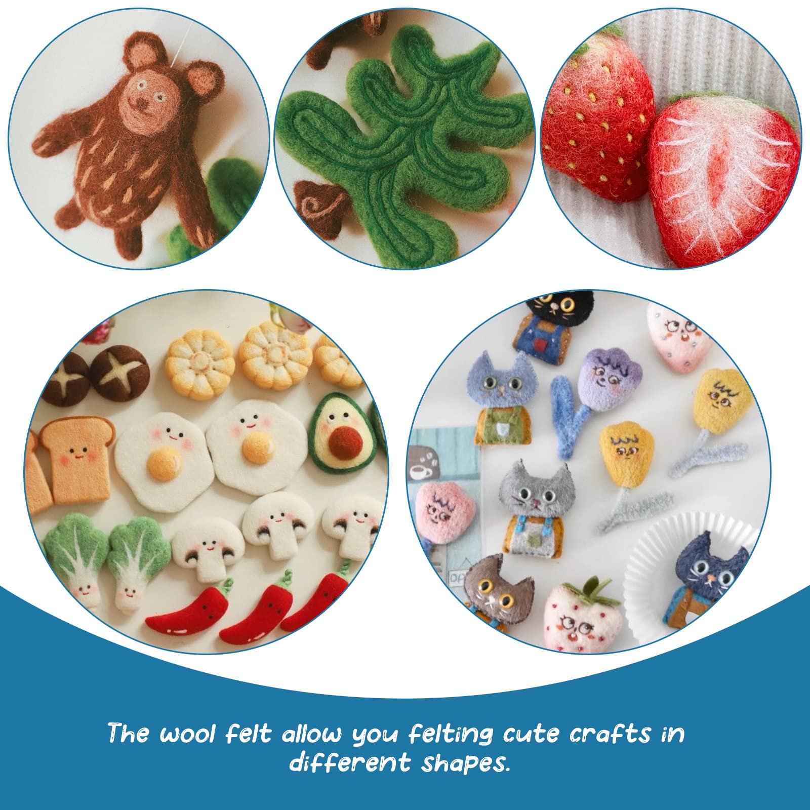 - The seven wool felt molds allow you felting cute crafts in different shapes. The oil wiping cloth allows you to wipe the protective oil on the felting needles. Of course, there are a series of necessary needle felting supplies such as awl, scissor, tweezers, dust plug, phone lanyard, finger cot, plastic nose, plastic eyes, 9-shape needle, T-shape needle.