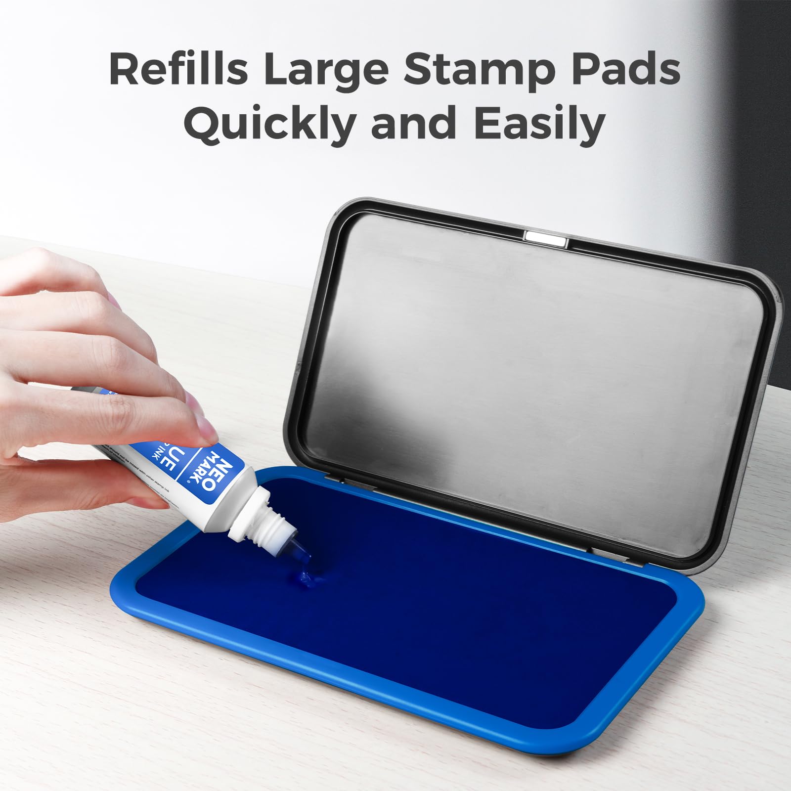 NEO MARK Premium Stamp Ink, Quick-Drying and AP-Certified Non-Toxic Refill Ink for Self-Inking Stamps, Date Stamps and Stamp Pads(Blue, 1oz)