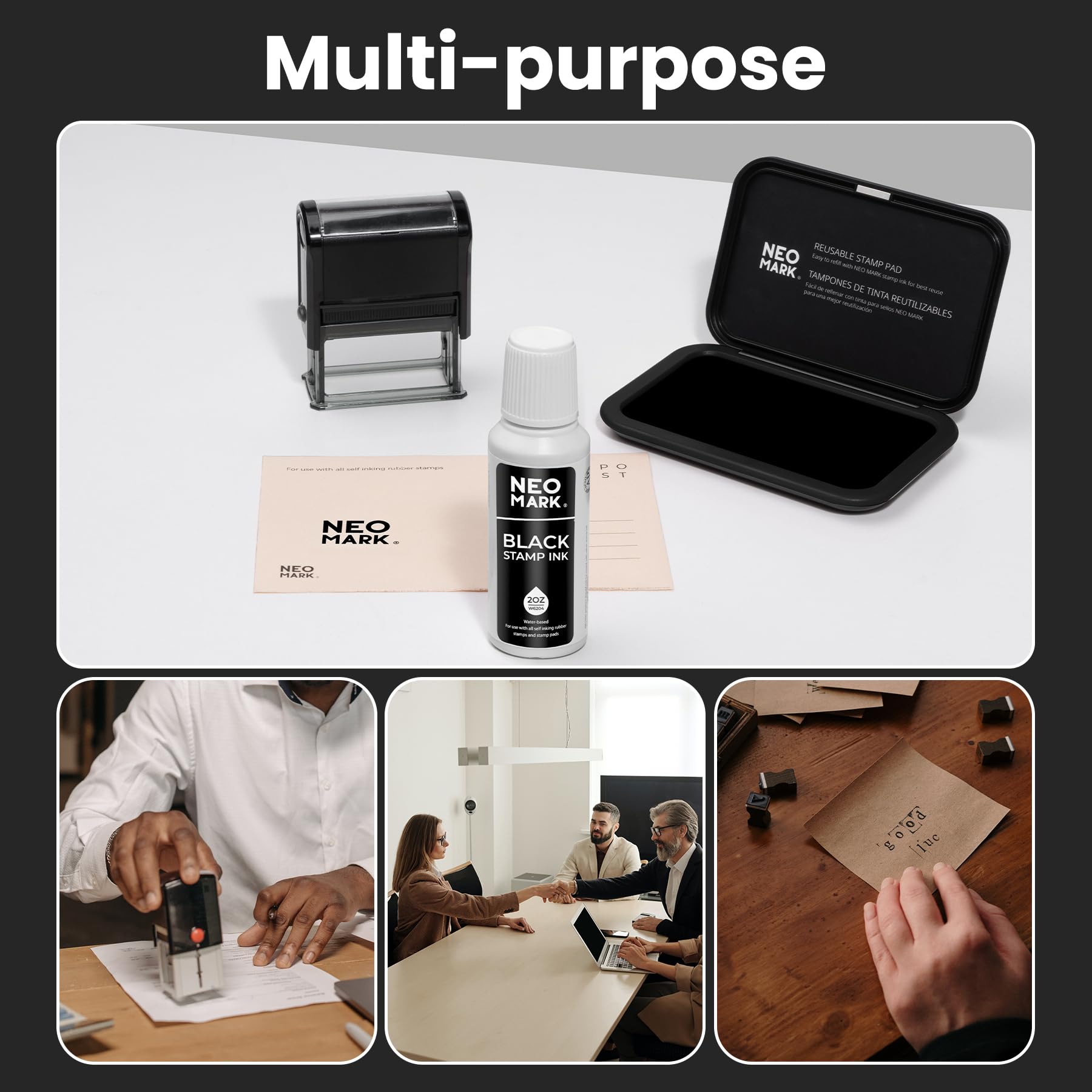NEO MARK Premium Stamp Ink, Quick-Drying & AP-Certified Non-Toxic Refill Ink for Self-Inking Stamps, Date Stamps and Stamp Pads (Black, 2oz)