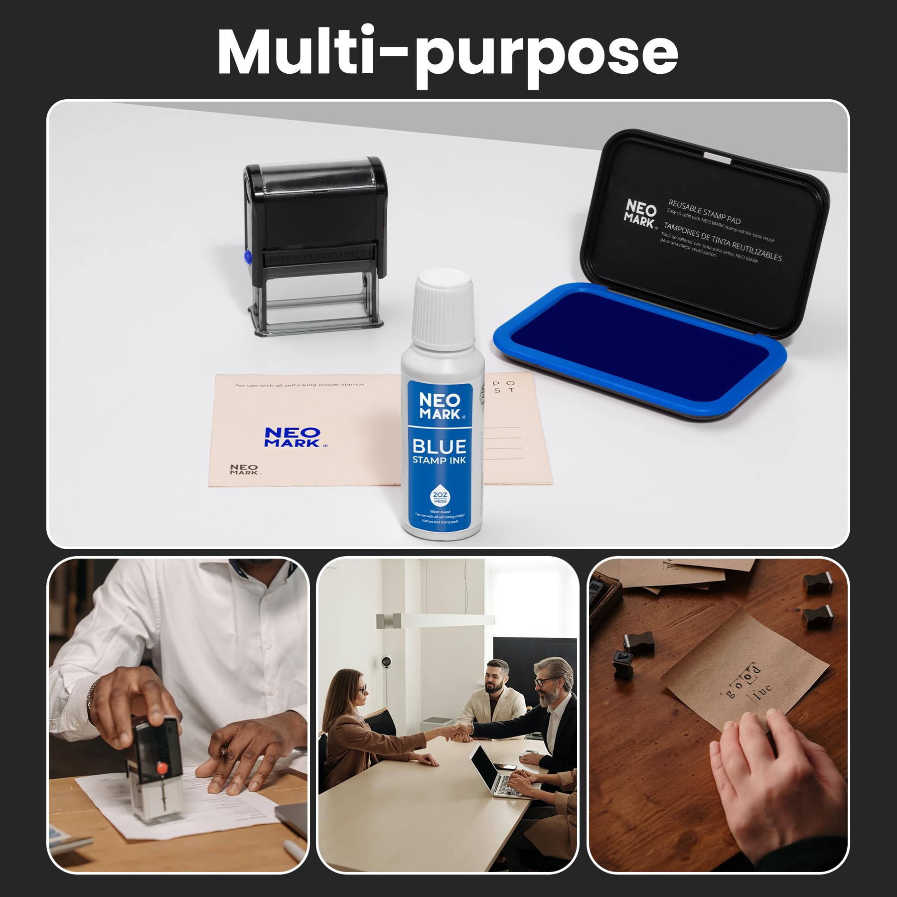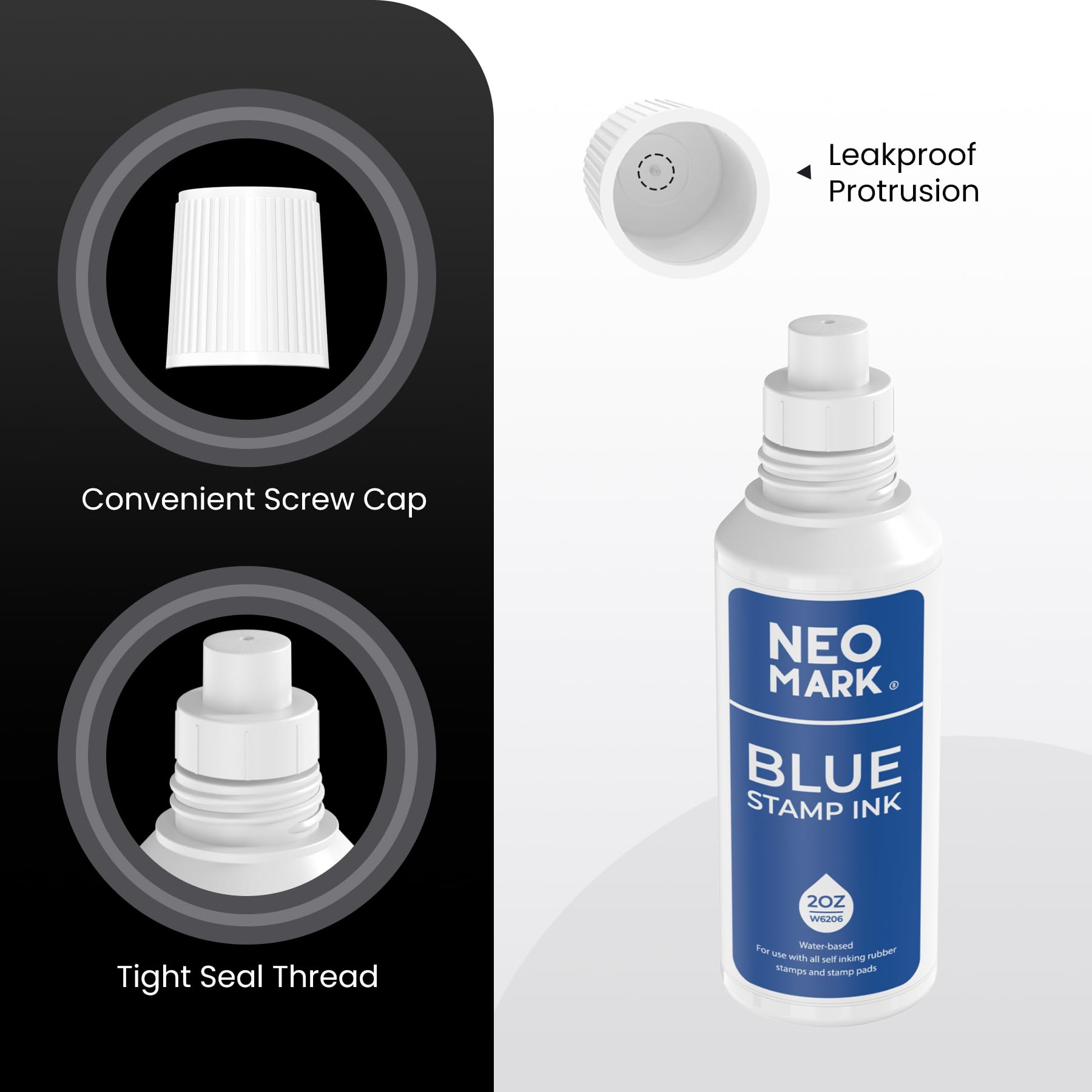 NEO MARK Premium Stamp Ink, Quick-Drying & AP-Certified Non-Toxic Refill Ink for Self-Inking Stamps, Date Stamps and Stamp Pads (Blue, 2oz)