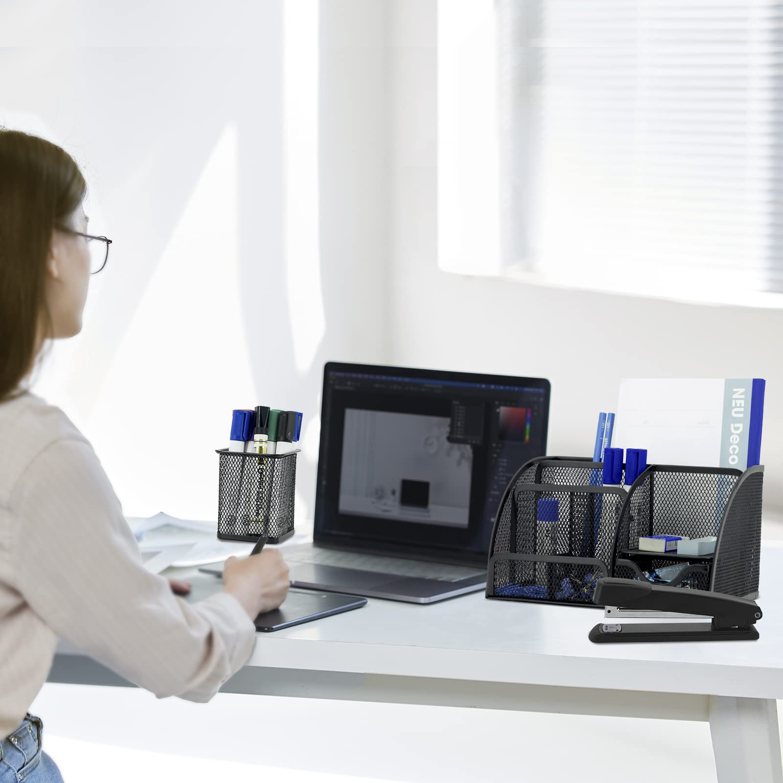- 【Versatile Desktop Organizer】: The Neudeco Mesh Desk Organizer is suitable for use in the office, home, or school. It keeps your workspace tidy and improves productivity, making it the perfect addition to any work environment.
