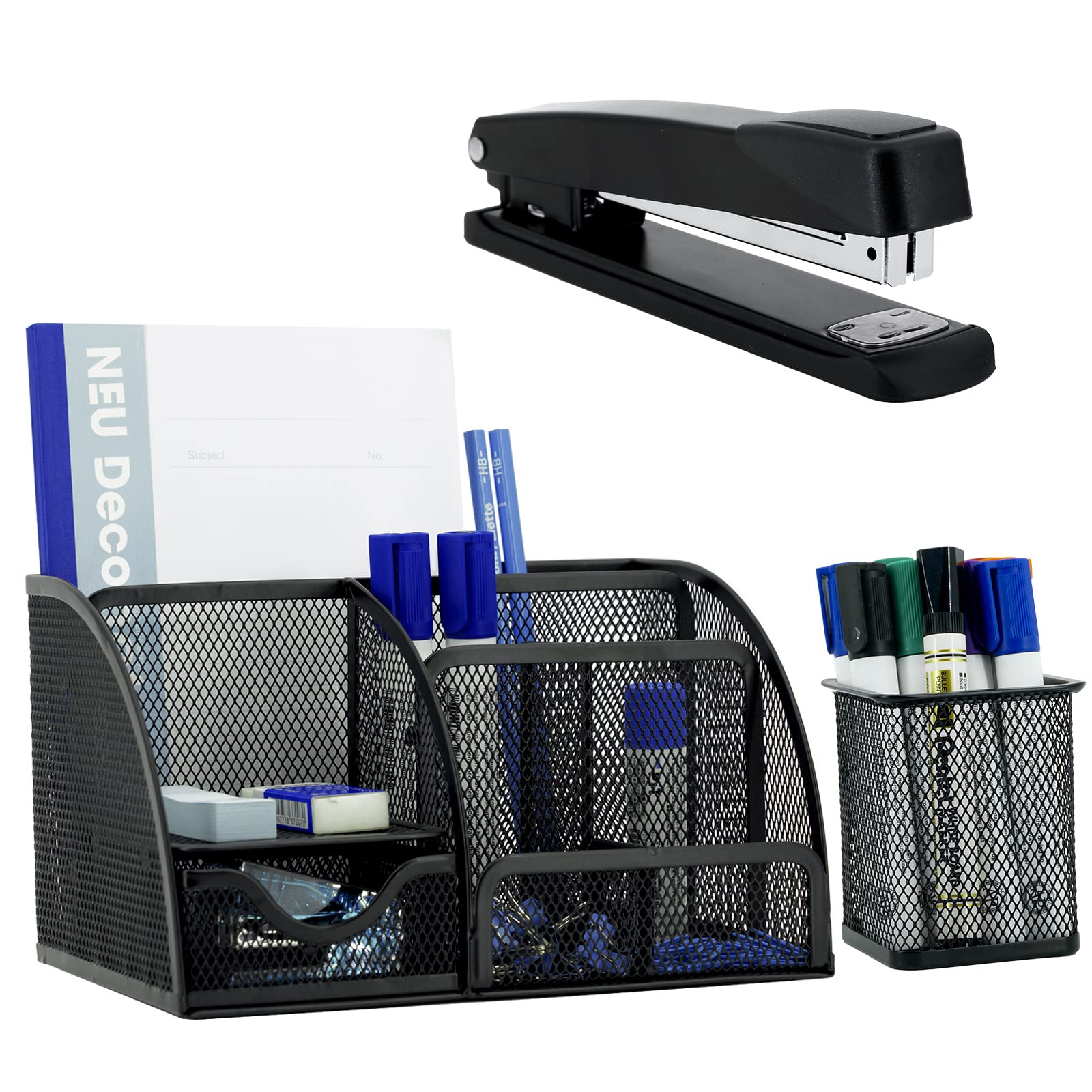 - 【Convenient Pen Holder and Stapler】: This desk caddy comes with a pen holder and stapler that can staple up to 25 sheets of paper at a time. It includes 1000 staples so you can get started right away.
