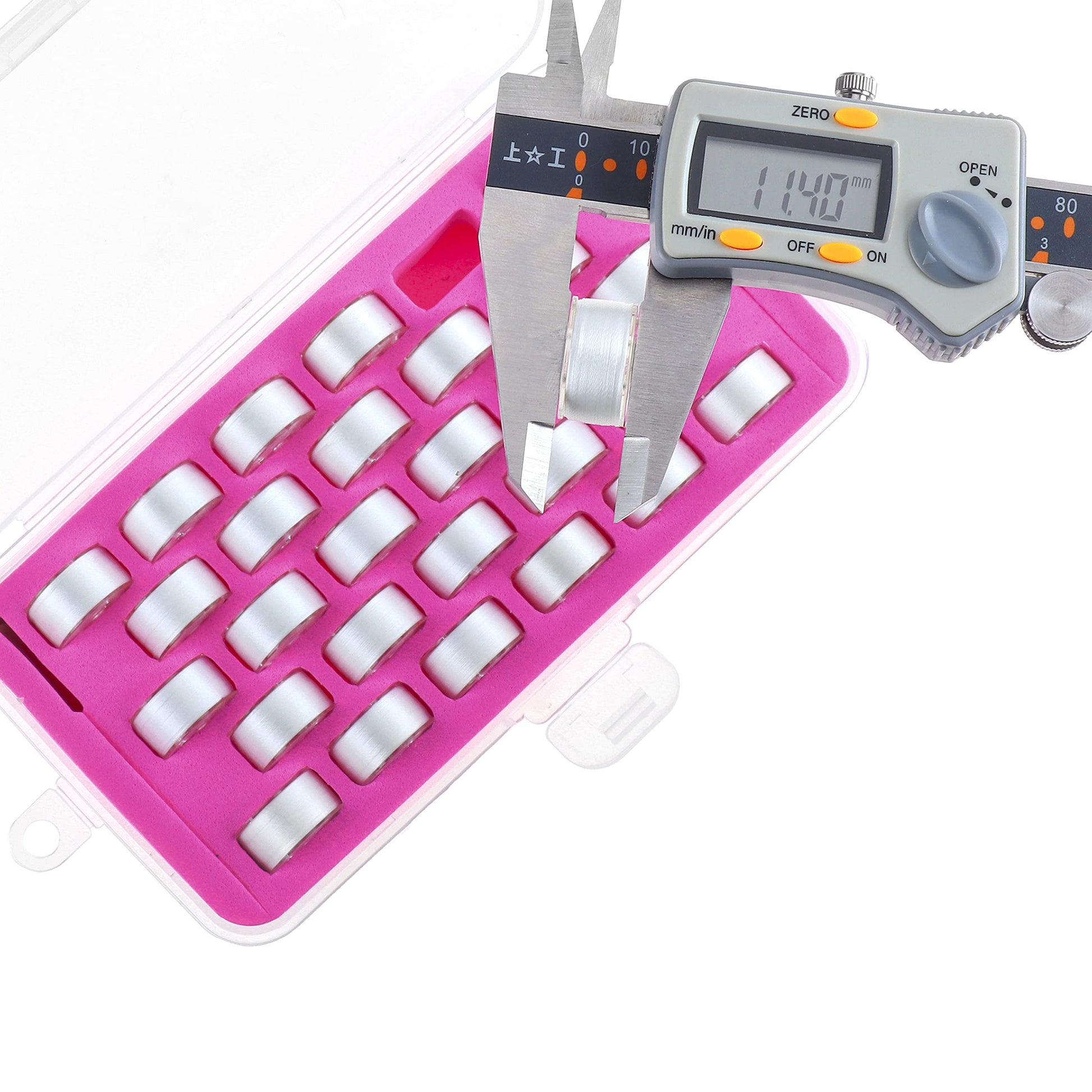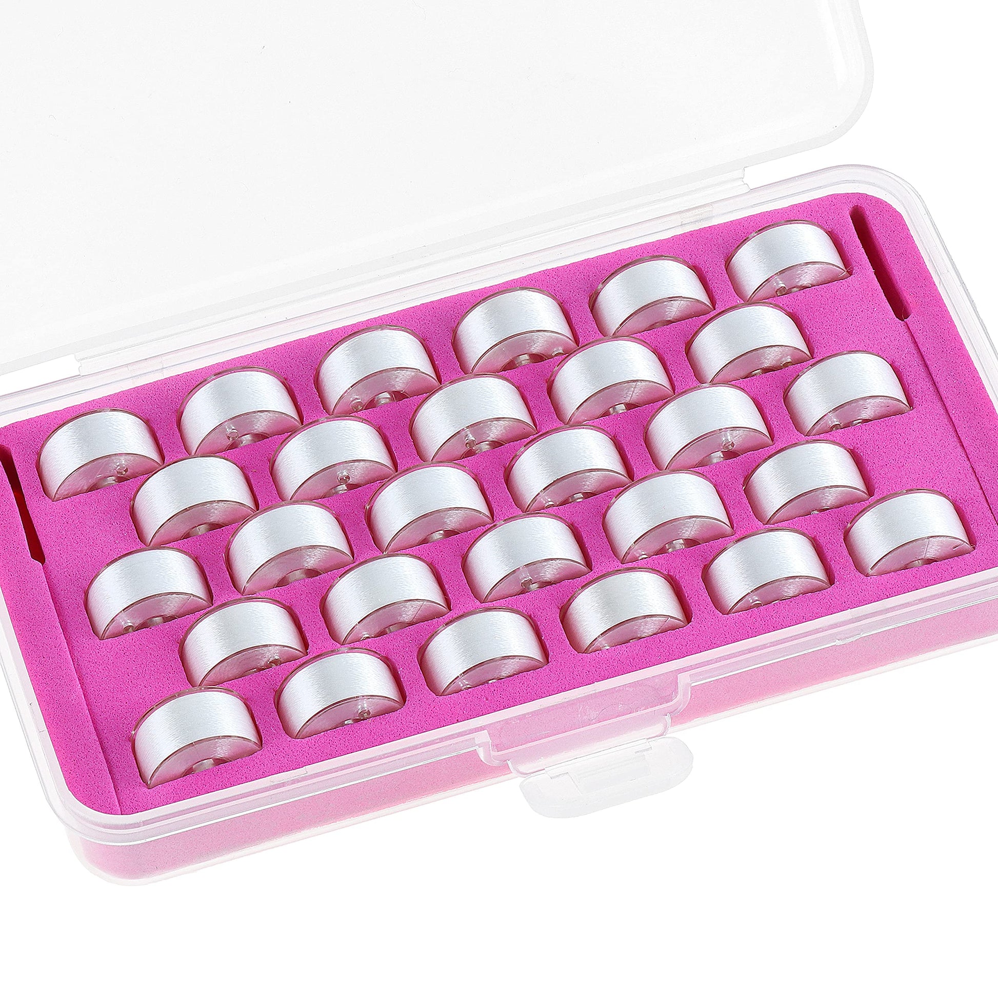 - ➤➤ Clear Plastic Case+28pcs Prewound Bobbin Threads: The foam pad with holes can hold bobbins snugly and prevent the bobbin threads from unraveling. The superb transparency of the box allows you to see the thread colors clearly. Hanging the storage box on the wall with hook is available.