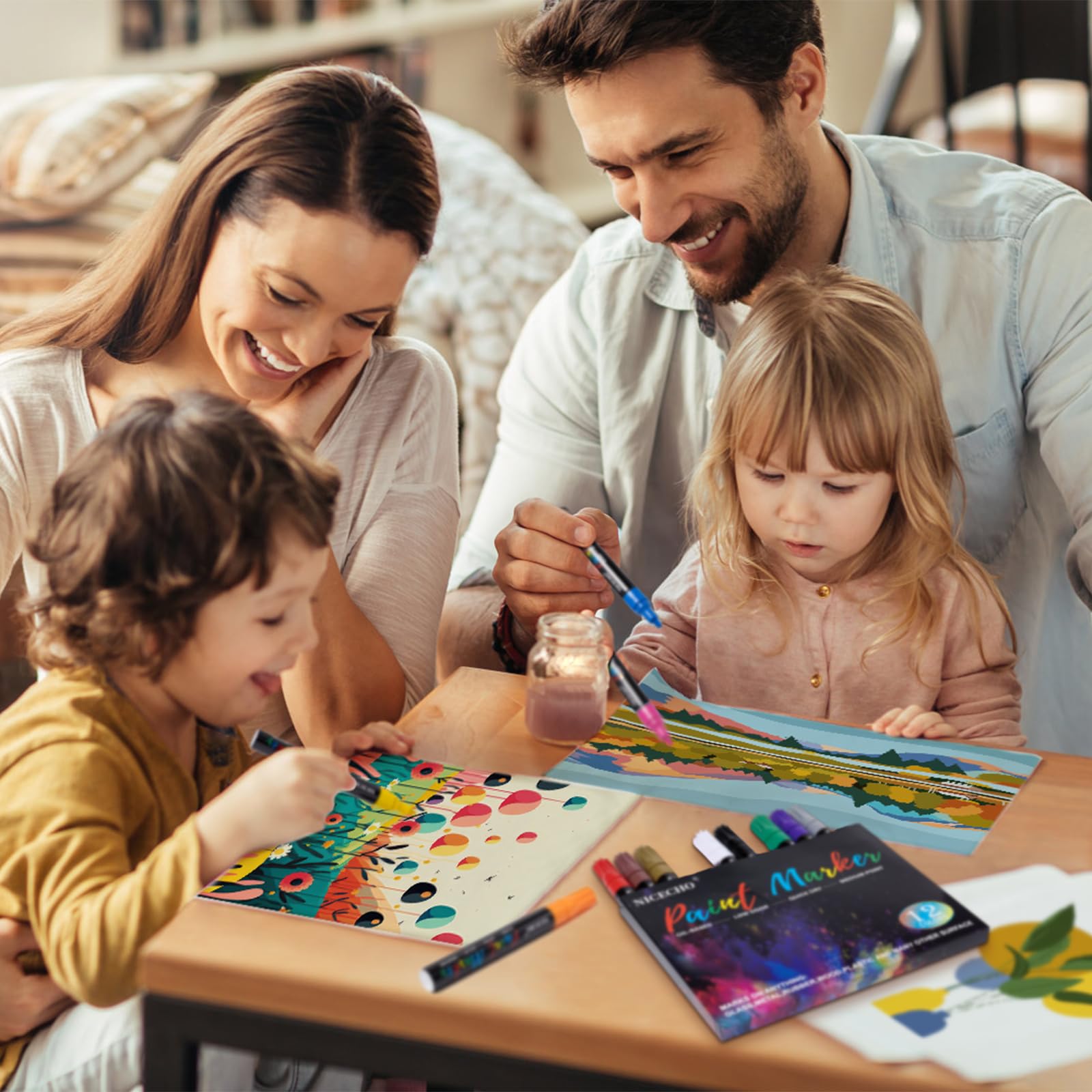 - INNOVATIVE TECHNOLOGY: Upgraded oil-based ink has low odor, is non-toxic, xylene-free, acid-free, and environmentally friendly, extremely smooth and precise control, we guarantee that every drop of ink is of high quality! 2.8-3mm tip diameter, durable round nib allows smooth and precise application. Great Coverage & Perfect Brightness, once you’re done with your project, the paint stays bright as ever.