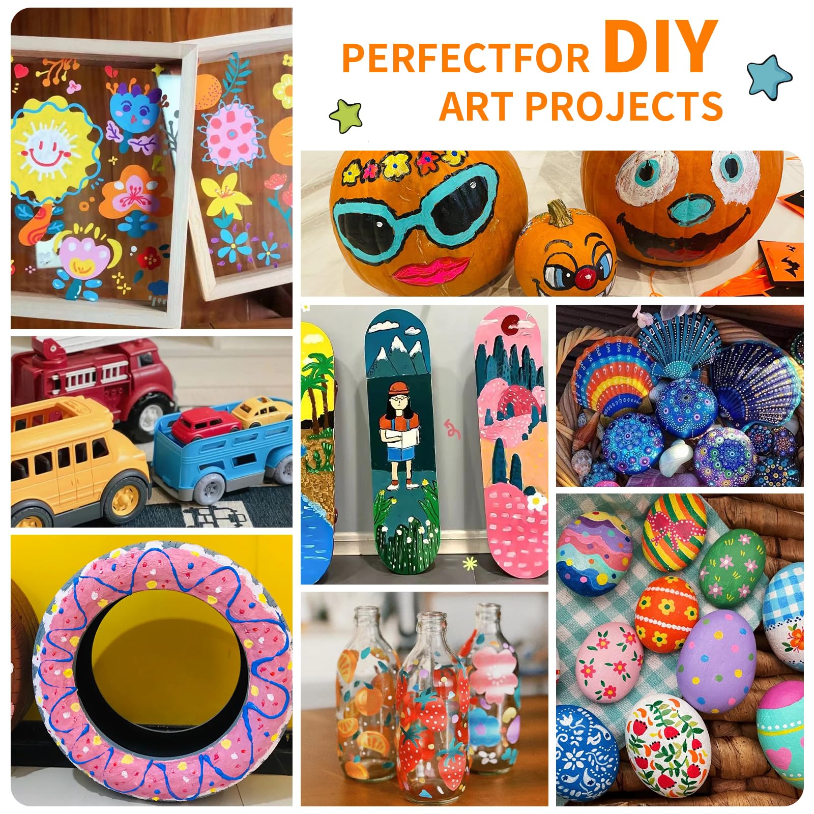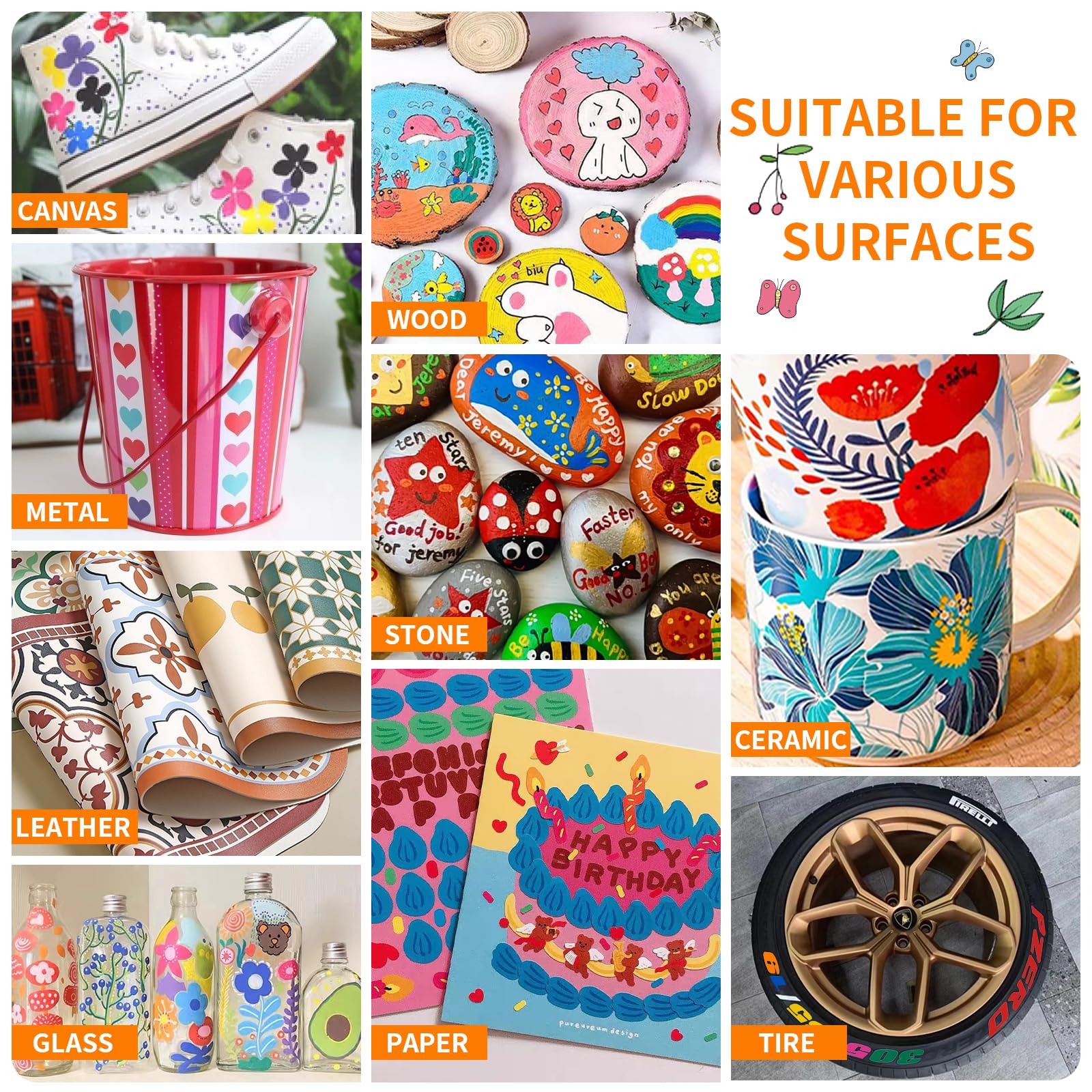 - WIDELY USED: Oil-Based paint markers are widely used than acrylic markers/watercolor pens because of high-quality permanent, you are no longer limited to paper but can work on rock painting, mugs, canvas, fabric, ceramic, tiles, glass, wood, leather, resin, tires, blackboard, Christmas ornament, add decoration to graffiti markers, card making, pumpkin kits, easter eggs, and much more for both smooth and porous surfaces. Ideal for kids, students, teenagers, adult, even artists.