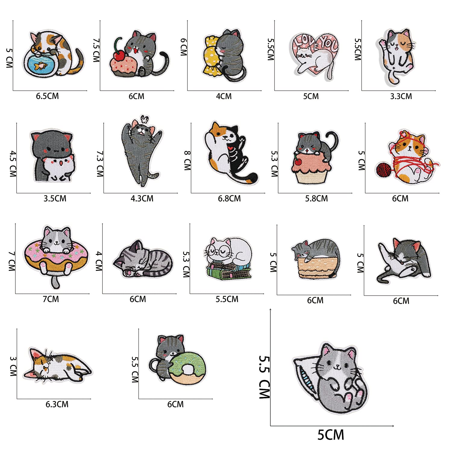Details: Nicime 18Pcs Cute Cat Patches for Clothing, Iron on / Sew on Cat Applique, Iron Patches