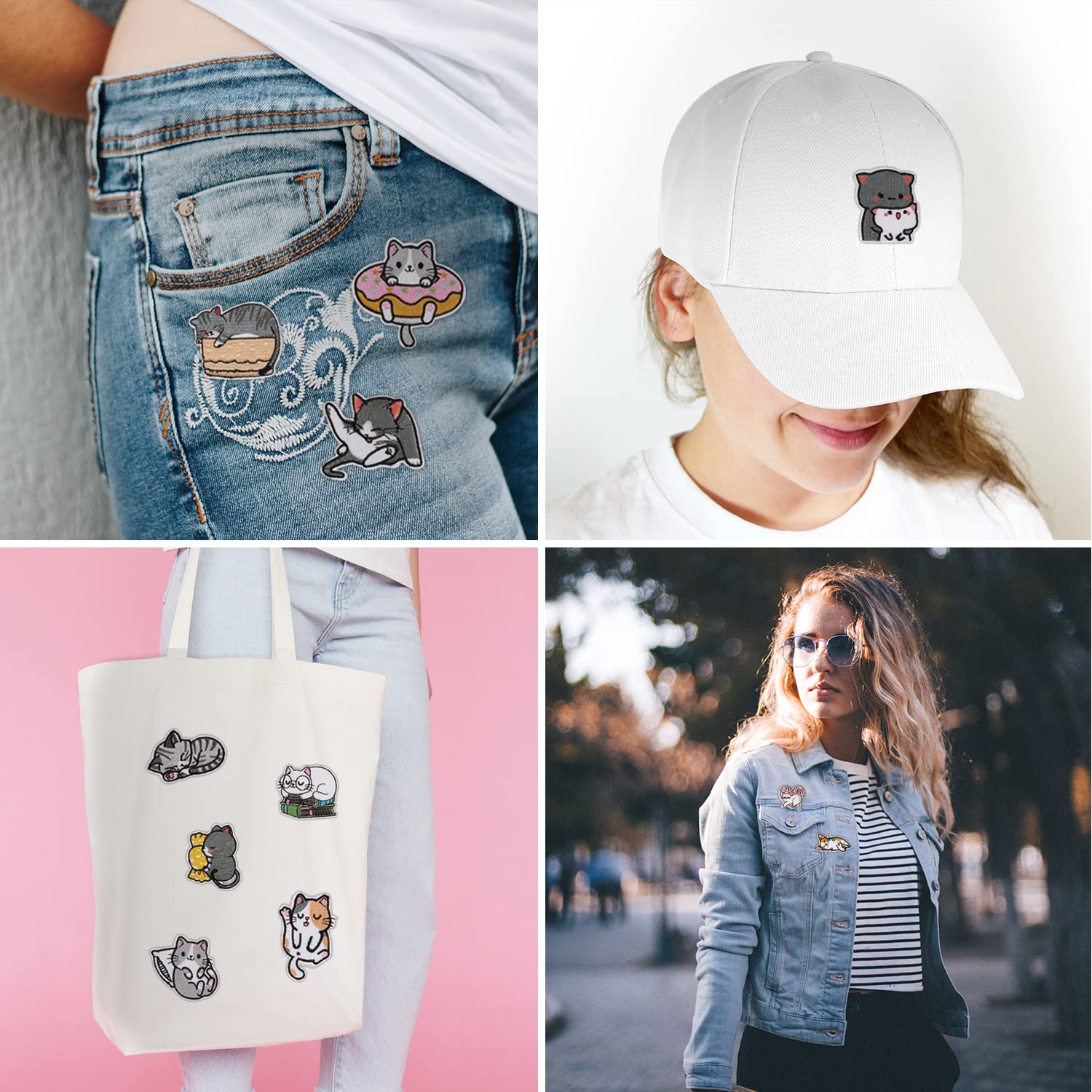 18Pcs Cute Cat Patches for Clothing, Iron on/Sew on Cat Applique, Iron Patches for Dresses Jeans Hats Shoes Shirts Jackets Backpacks