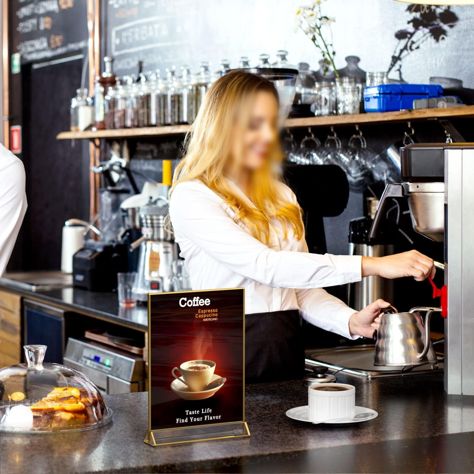 NIUBEE 6Pack 8.5 x 11 Acrylic Sign Holder with Gold Frames and Vertical Stand, Ideal for Display Wedding Table Numbers, Double Sided Picture, Clear Photos, Menu Holders