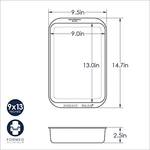 - Pan exterior dimensions 15.63 x 9.63 x 3.25 inches and interior dimensions 13 x 9 x 2.5 inches
