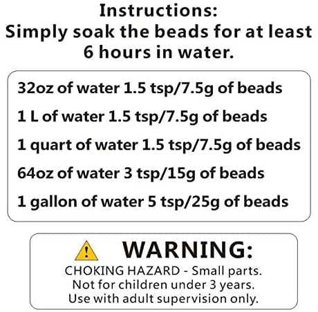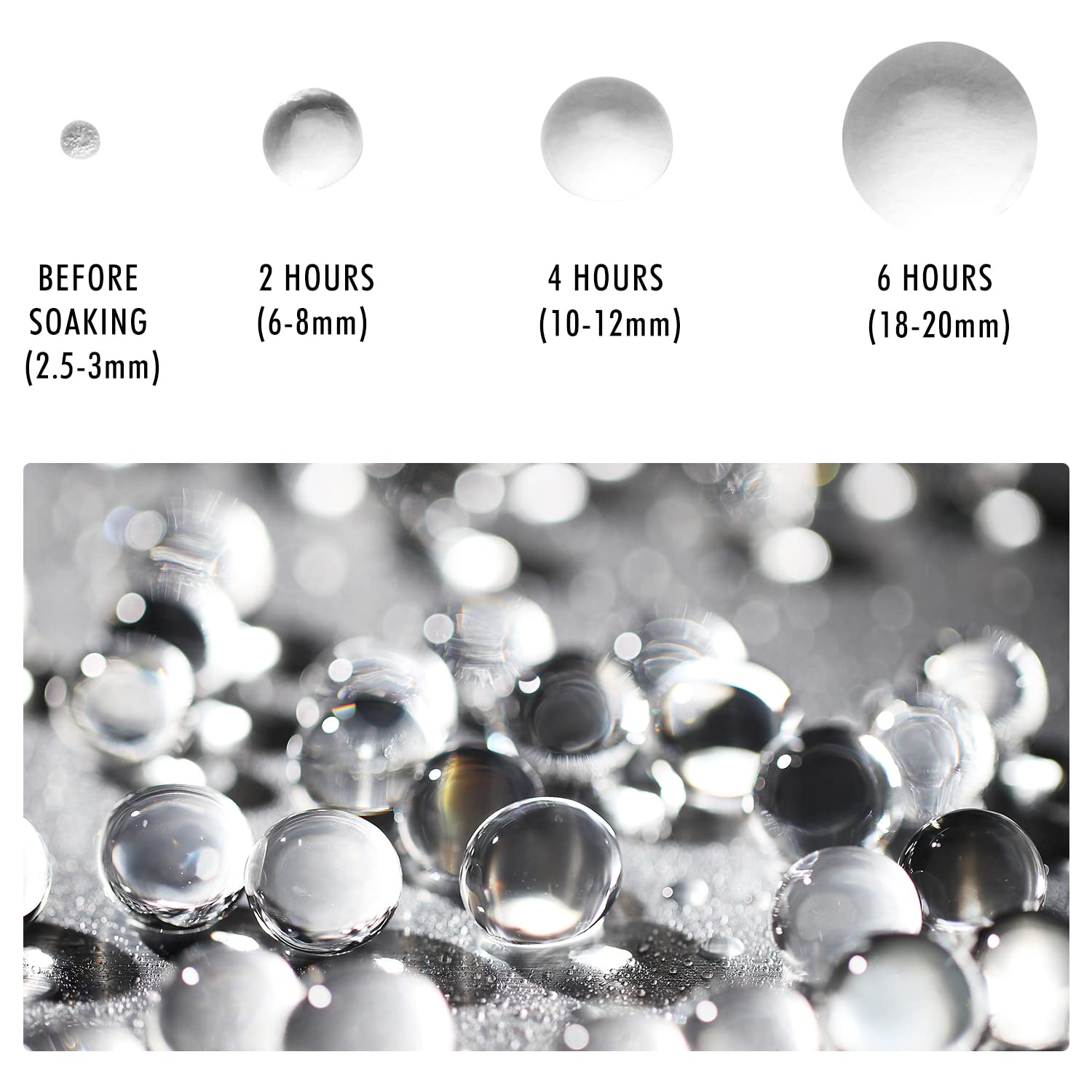 - Instructions: The beads require soaking in water for 6 hours. Water gel beads will grow up to 11-13mm after absorbing enough water. Water pearls can last for 2-3 weeks. Paired with the submersible LED Tealight, the clear floral beads will also take on a beautiful glow.