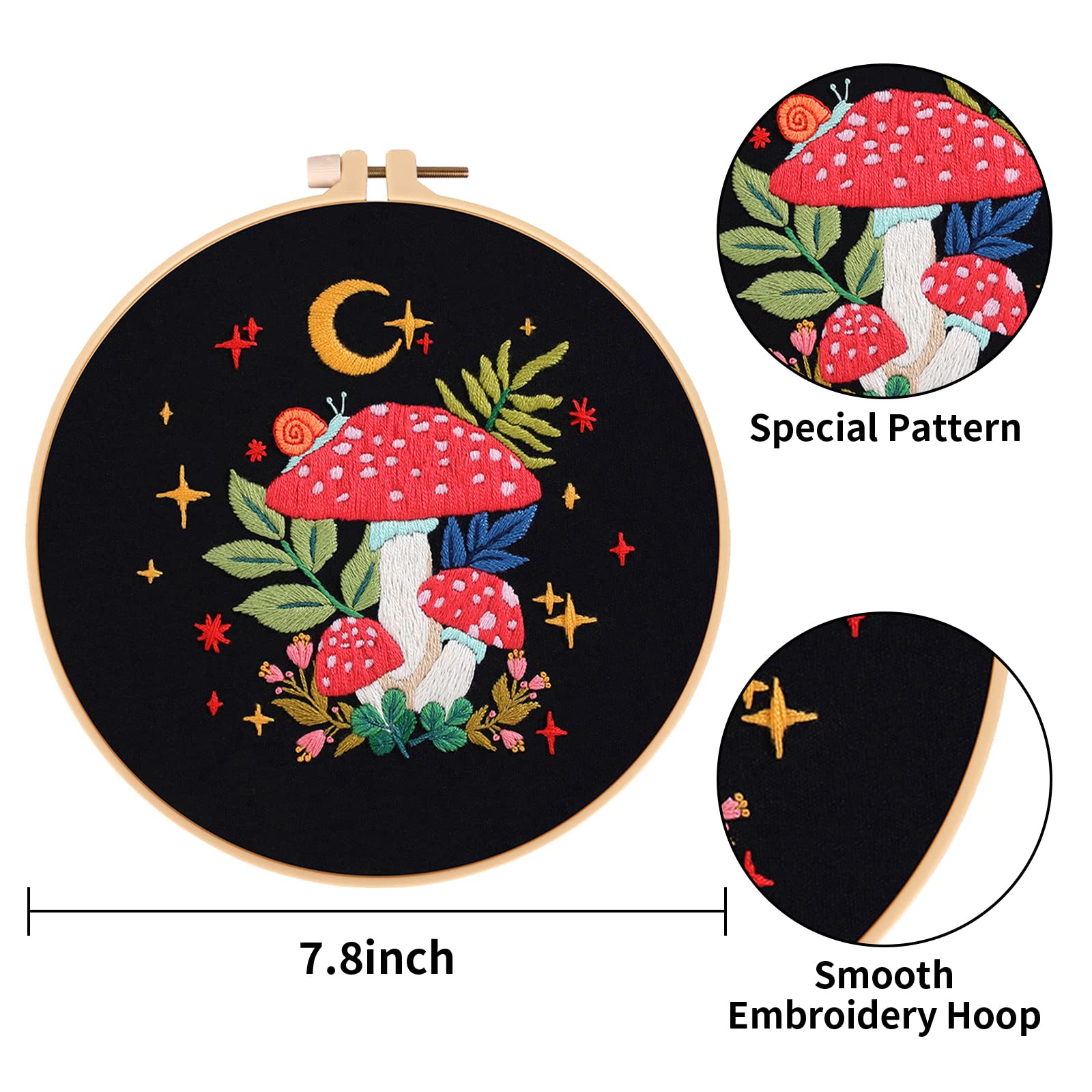 Nuberlic 3 Pack Embroidery Kit for Beginner Adults, Stamped Cross Stitch with Mushroom Patterns Include 3 Hoop, Cloth Thread Needles and Instructions